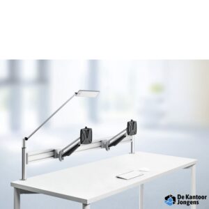 Bureau Accessoires Lees verderKrachtige 2-delige monitorarm met gasdrukveer voor comfortabele en ergonomische instelling van twee monitoren.