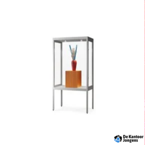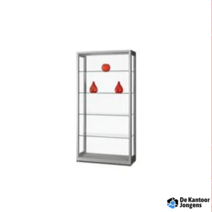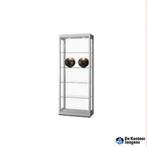 SDB Vitrine stofdicht 1000 zilver met LED plafondspots op poten