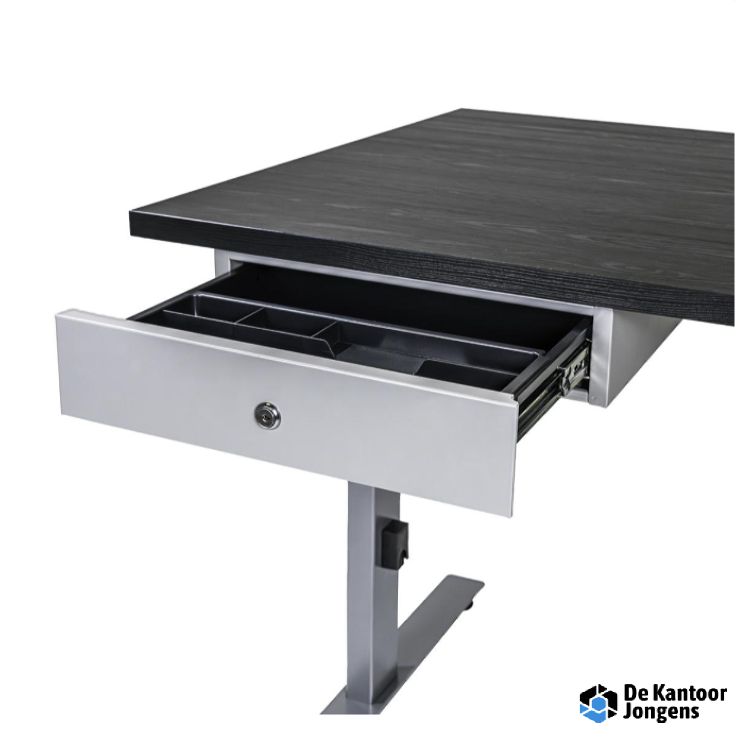 Personaliseer je werkruimte door te kiezen uit drie stijlvolle kleuren – zwart RAL 9005, wit RAL 9016, of aluminium RAL 9006. Zo kun je de lade perfect afstemmen op de rest van je kantoorinrichting en een harmonieuze sfeer creëren.