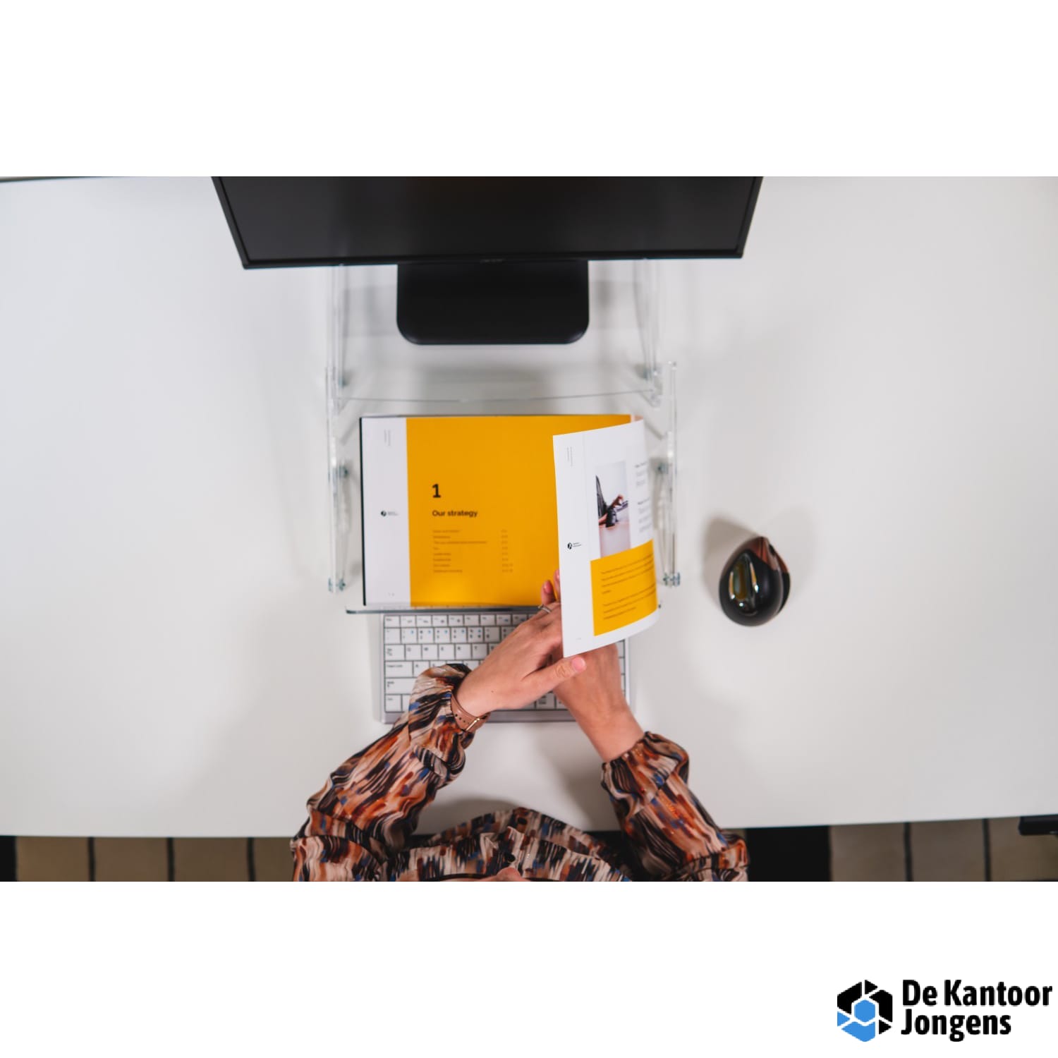 De Q-doc 415 documenthouder garandeert een ergonomische manier van werken in een rechte werkhouding. Voortaan liggen jouw documenten en mobiele apparaten recht voor je in de optimale kijkhoek. Om de ideale hoogte te bereiken, kan je de Q-doc 415 in zeven stappen verstellen. Deze documenthouder heeft een compact opslagoppervlak van 390 mm x 275 mm en maakt de Q-doc 415 ook geschikt voor werkplekken met minder ruimte, bijvoorbeeld op het thuiskantoor. Verbeter jouw werkhouding, optimaliseer jouw kijkhoek en werk ergonomisch op één lijn met de Q-doc 415.