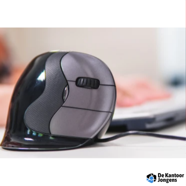De ergonomische vorm van de Evoluent D is geïnspireerd op vele jaren ervaring en onderzoek. De vorm van de muis ligt perfect in de hand en voelt niet massief aan. De ergonomische vorm ondersteunt de hand van de gebruiker in een hand-schudpositie, de meest neutrale houding van hand, pols en arm. Het vastpakken van de verticale muis in een hand-schudpositie verlicht of voorkomt daardoor automatisch pijn in arm en pols. De extra brede lip langs de onderrand voorkomt dat de pink tegen het bureau schuurt. Dit biedt superieur comfort voor jouw werk en leidt tot meer productiviteit.