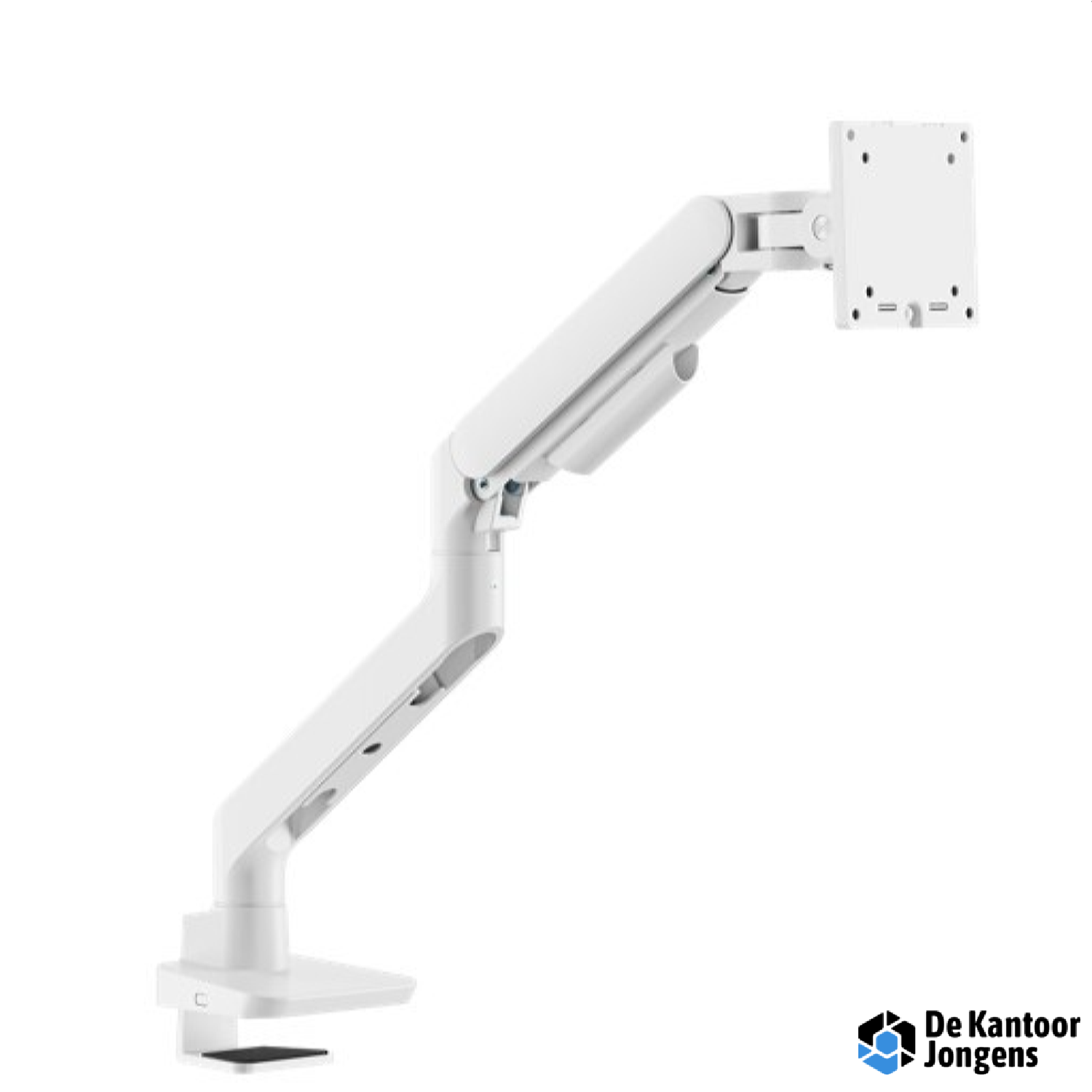 De vernieuwde enkele Swing-monitorarm wordt voorzien door een krachtige gasveer.