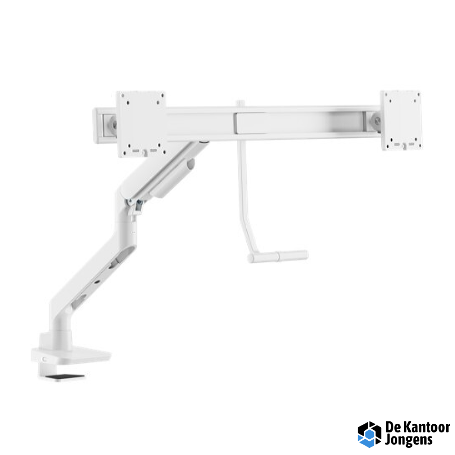 De Swing dubbele monitorarm met crossbar ondersteunt