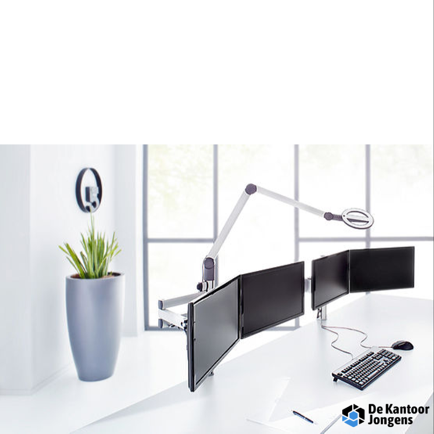 Alles in één oogopslag – de monitorbrug uit het NOVUS Tetra-Support-System voor 4 monitoren