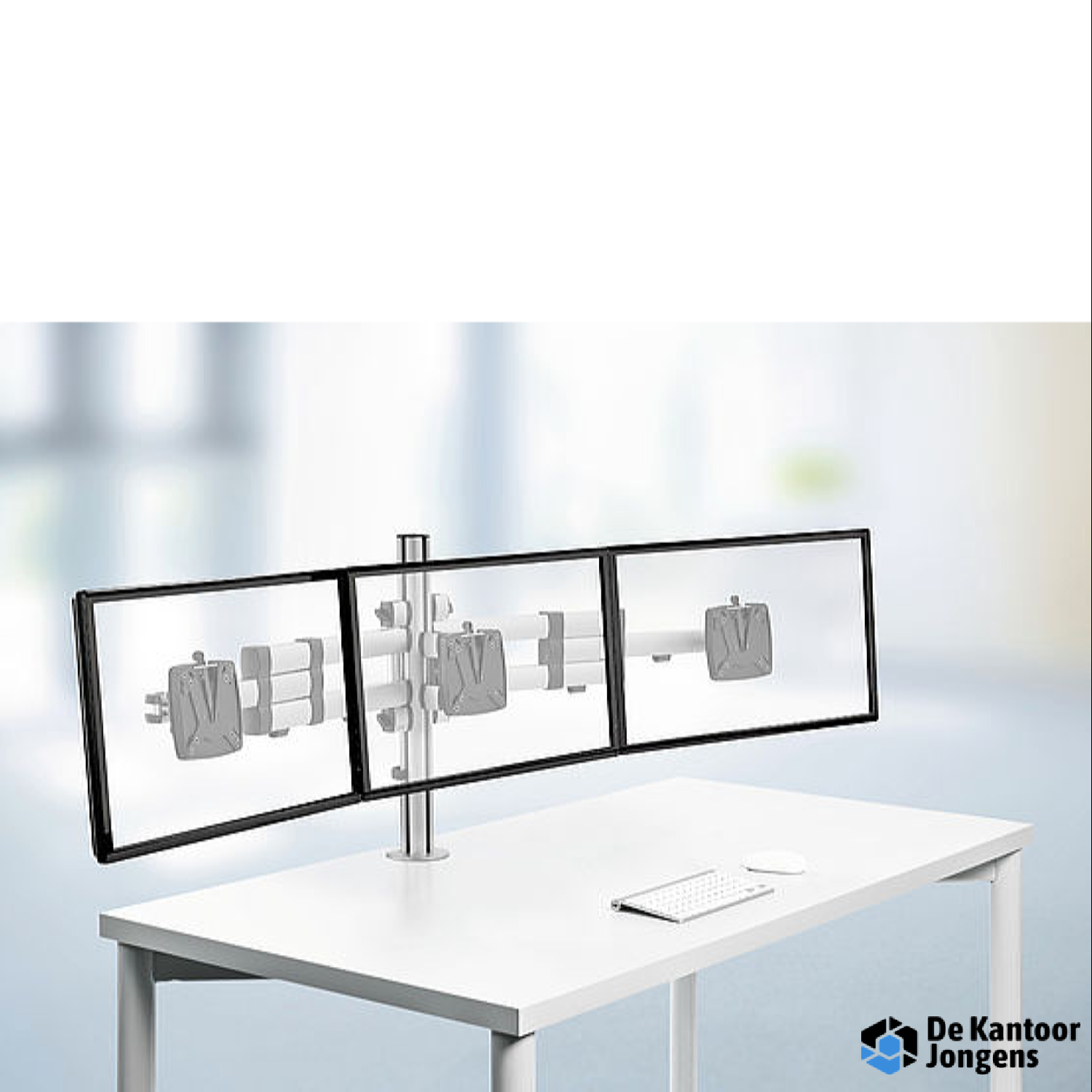 De oplossing voor 3 schermen op de werkplek zorgt voor nog meer productiviteit.