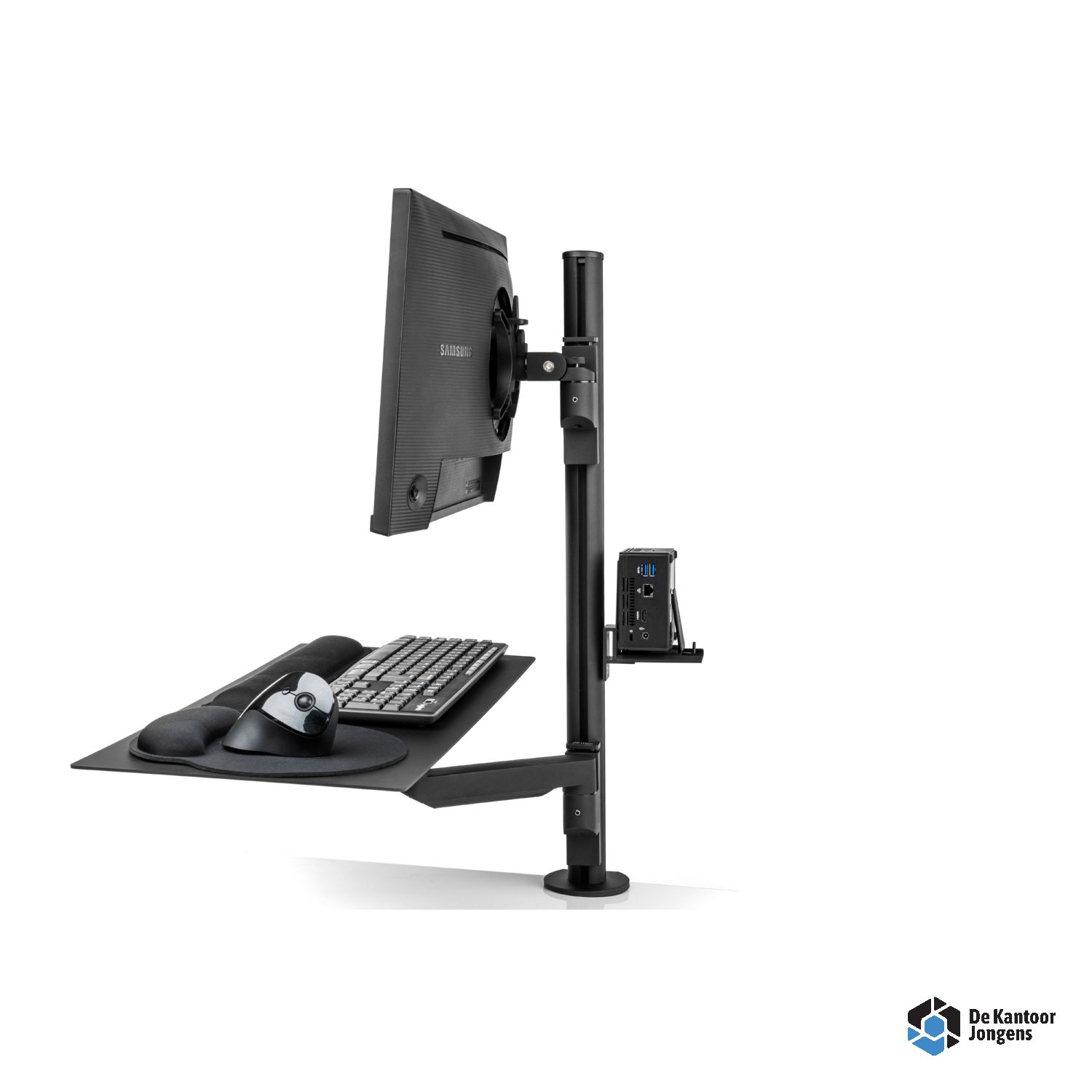 Door zijn slimme constructie, in combinatie met elk type Filex Galaxy arm. Kunt u altijd elke gewenste houding en stand, 180 graden draaien of kantelen, zelf snel en simpel ergonomisch verantwoord instellen. Het plateau is tevens voorzien van een prettige Gel-pols toetsenbord steun en gel-Muis support. De ideale oplossing ook als u wisselend , zittend en staand wilt werken, alles binnen handbereik wilt hebben en wellicht informatie met een client of collega wilt delen.