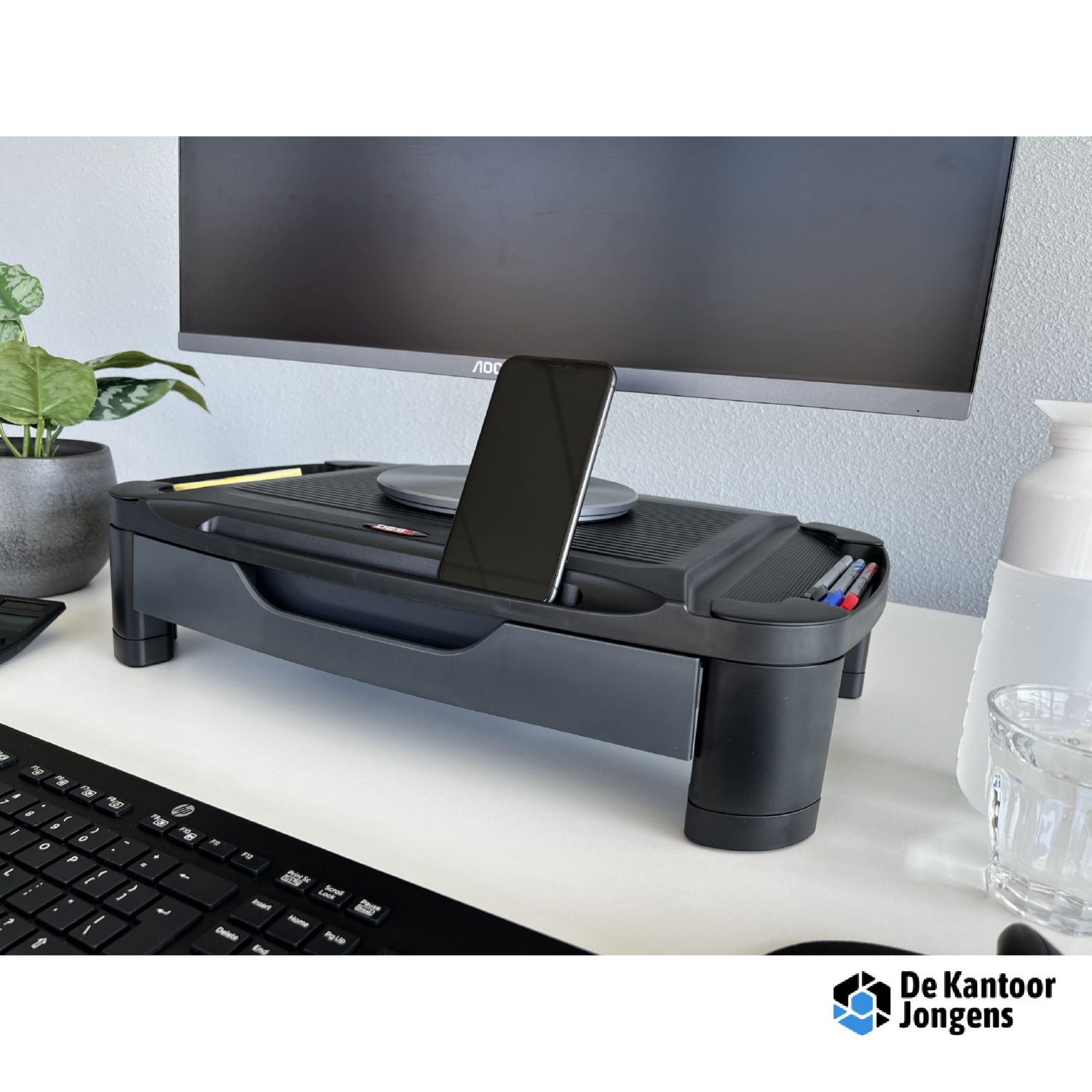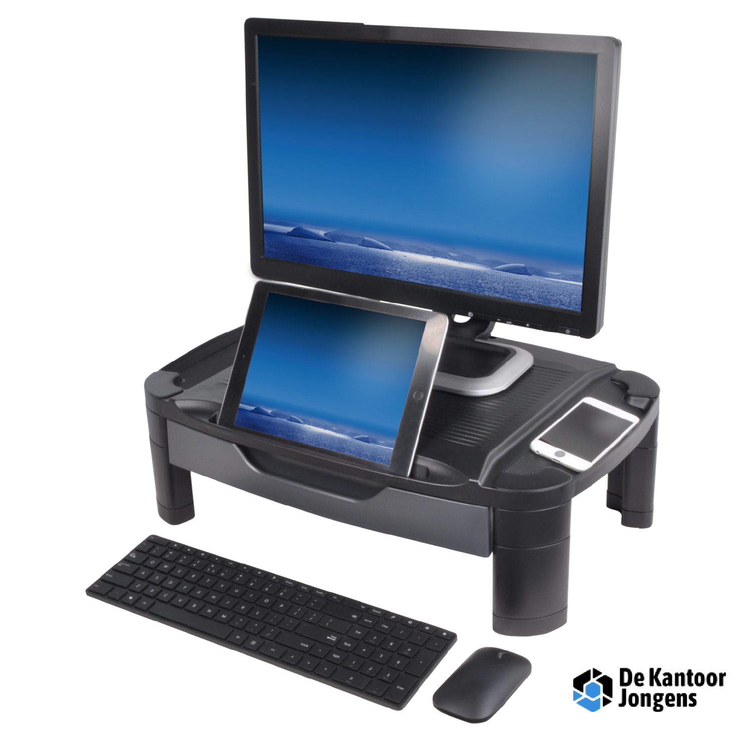 XLarge monitorverhoger met veel extra ruimte voor uw tablet/smartphone, of om uw bureaubenodigdheden op te bergen