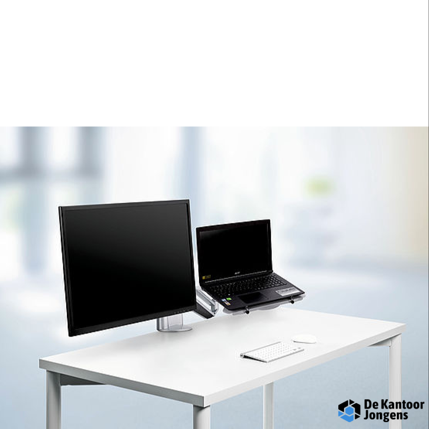 De optimale oplossing voor notebook-werkplekken met gasdrukveer voor comfortabele, ergonomische instelling van de monitor en het notebook.