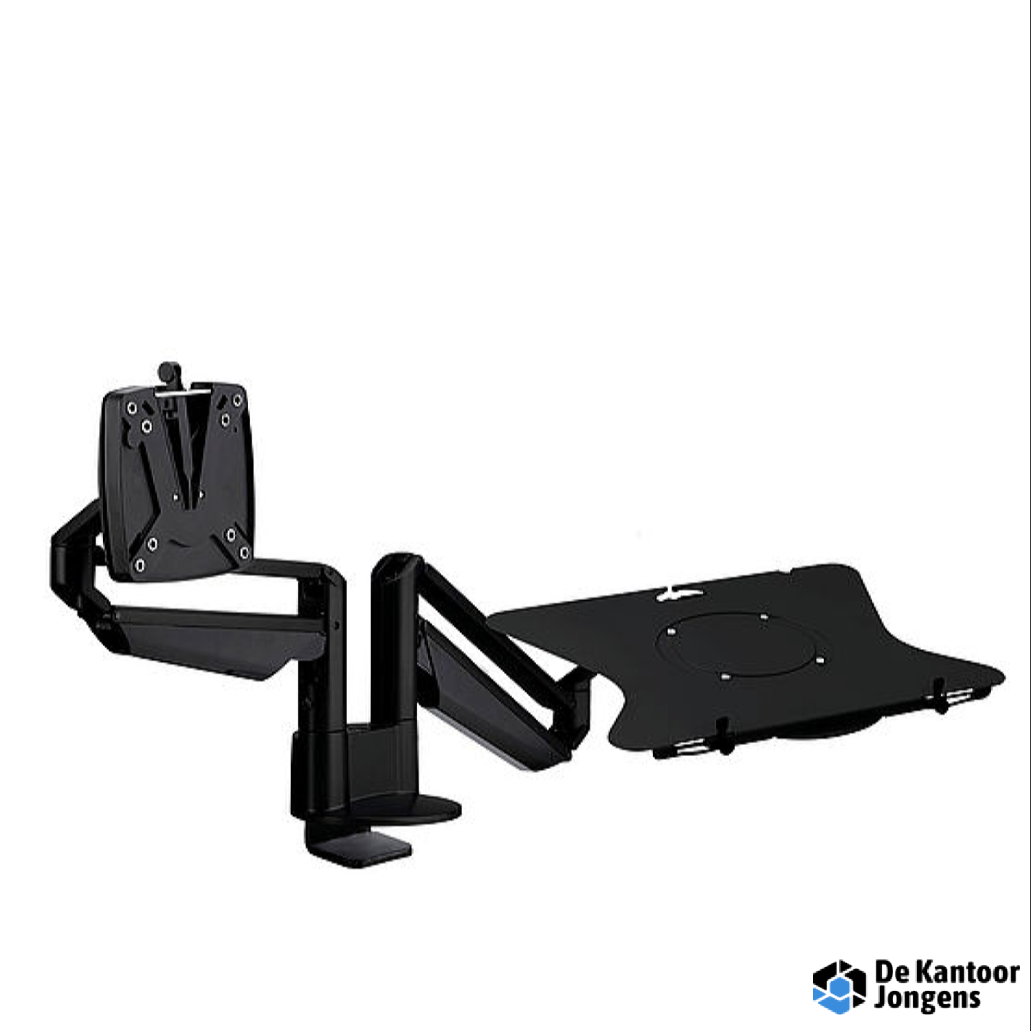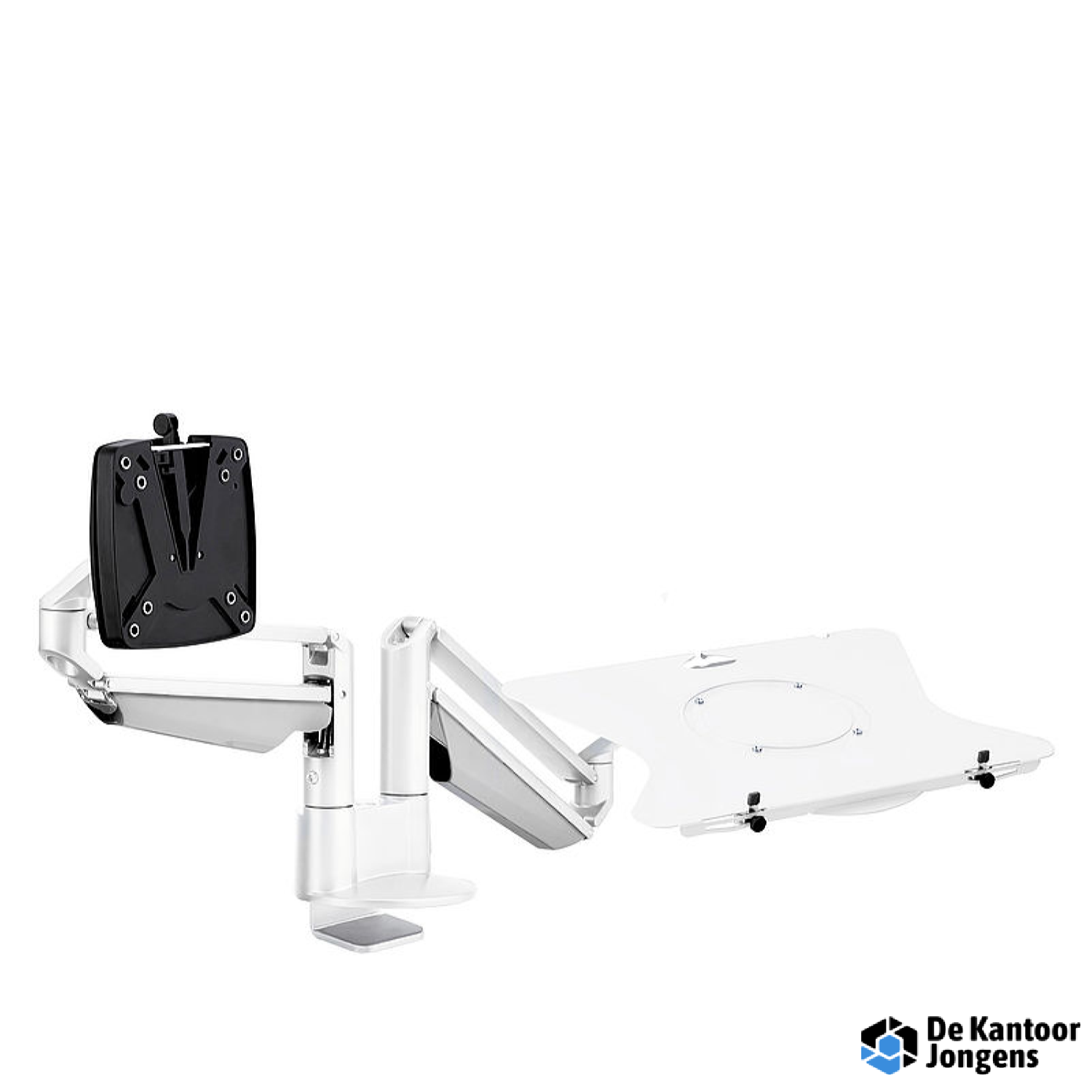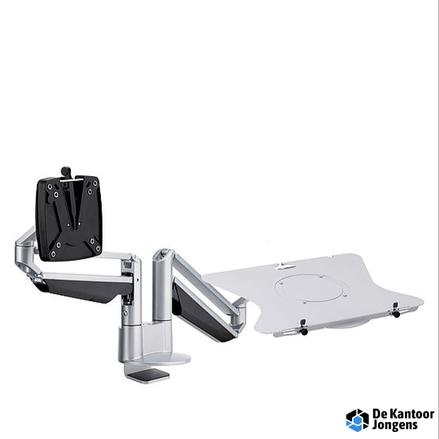 De optimale oplossing voor notebook-werkplekken met gasdrukveer voor comfortabele, ergonomnische instelling van de monitor en het notebook.