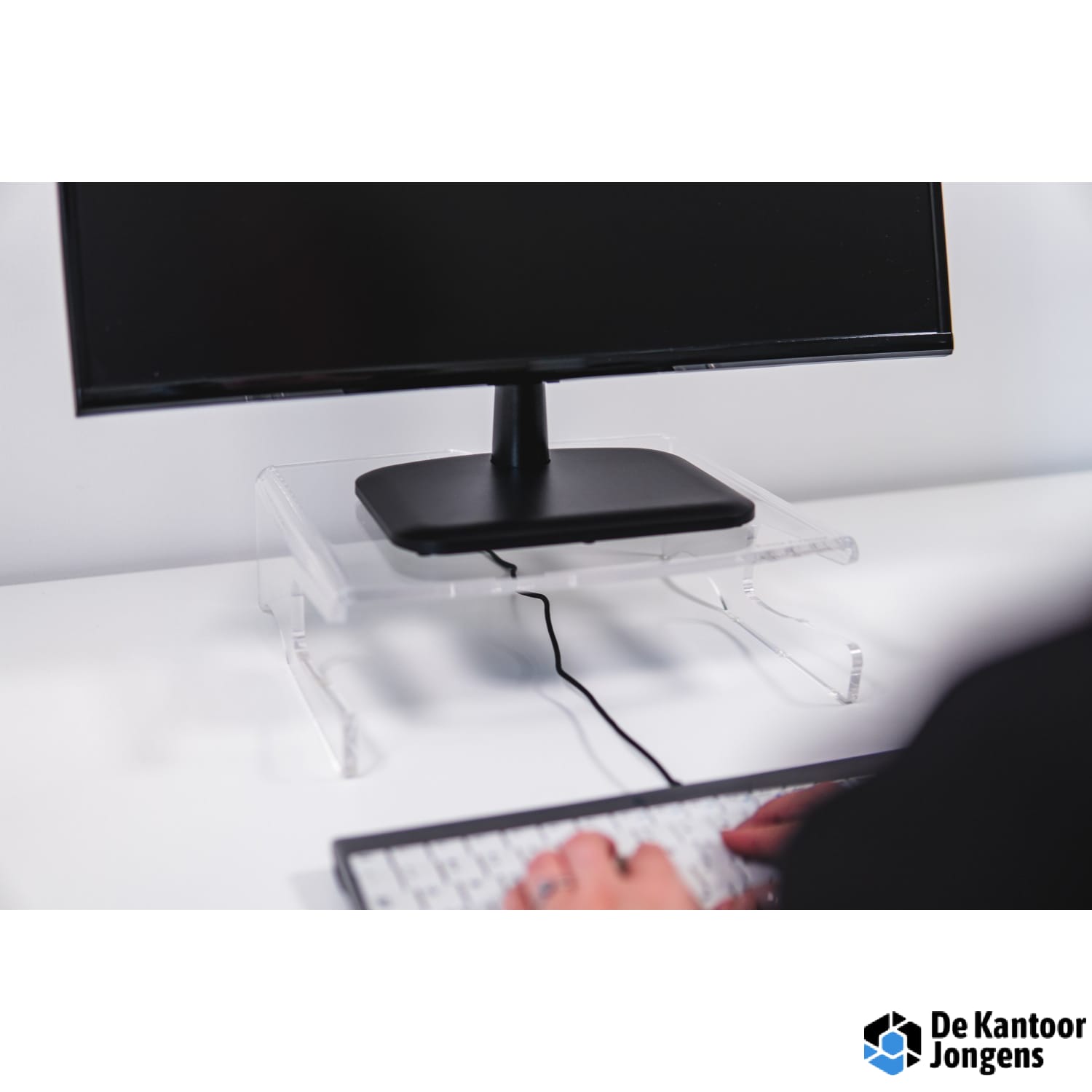 De Q-Riser 100 ergonomische monitorstandaard optimaliseert jouw werkruimte om comfortabeler aan jouw beeldscherm te werken. Met de Q-Riser 100 monitorstandaard voeg je 105 mm hoogte toe aan jouw flatscreen en kan je automatisch een rechtere en gezondere werkhouding aannemen, waardoor je jouw nek niet belast en jouw ogen niet oncomfortabel worden. Deze monitorstandaard is gemaakt van hoogwaardig (duurzaam) acrylaat en is daardoor zeer stabiel. Je kunt de ruimte op jouw bureau onder de Q-Riser 100 vrijmaken en gebruik maken van de nette opbergruimte boven de voorpoten. Verbeter jouw productiviteit met de voor jouw optimale beeldschermhoogte en met een goed beheerde en overzichtelijke werkruimte.