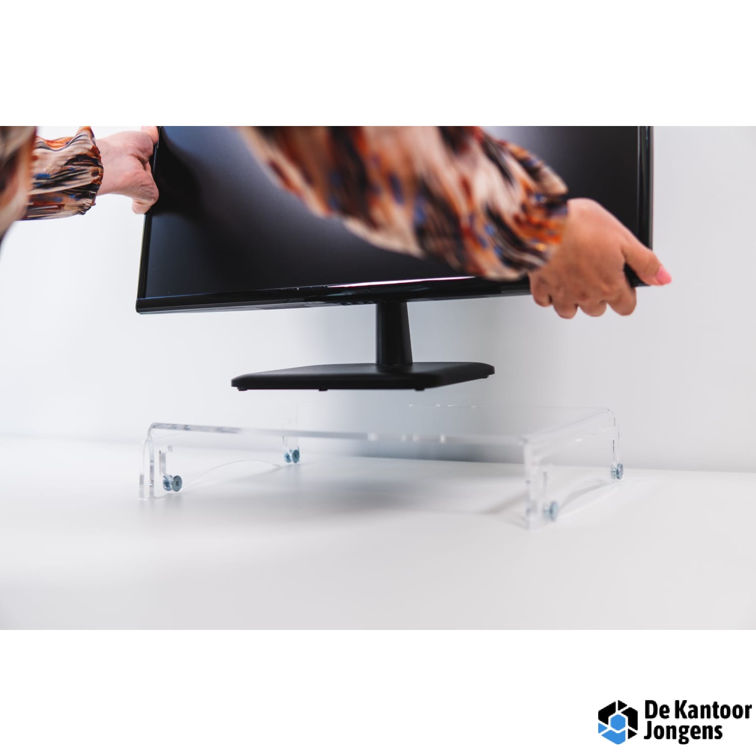 De Q-Riser 110 is een in hoogte verstelbare monitorstandaard gemaakt van hoogwaardig (duurzaam) acryl materiaal. Deze monitorstandaard creëert een ergonomische monitoropstelling op jouw vaste werkplek op kantoor, aan jouw gedeelde bureau of aan jouw bureau thuis. Het geïntegreerde kabelbeheer en het transparante uiterlijk zorgen voor een opgeruimd bureau. Kies een van de twee hoogteniveaus en breng jouw scherm in de optimale kijkpositie en pas automatisch jouw houding aan en voel het comfort.