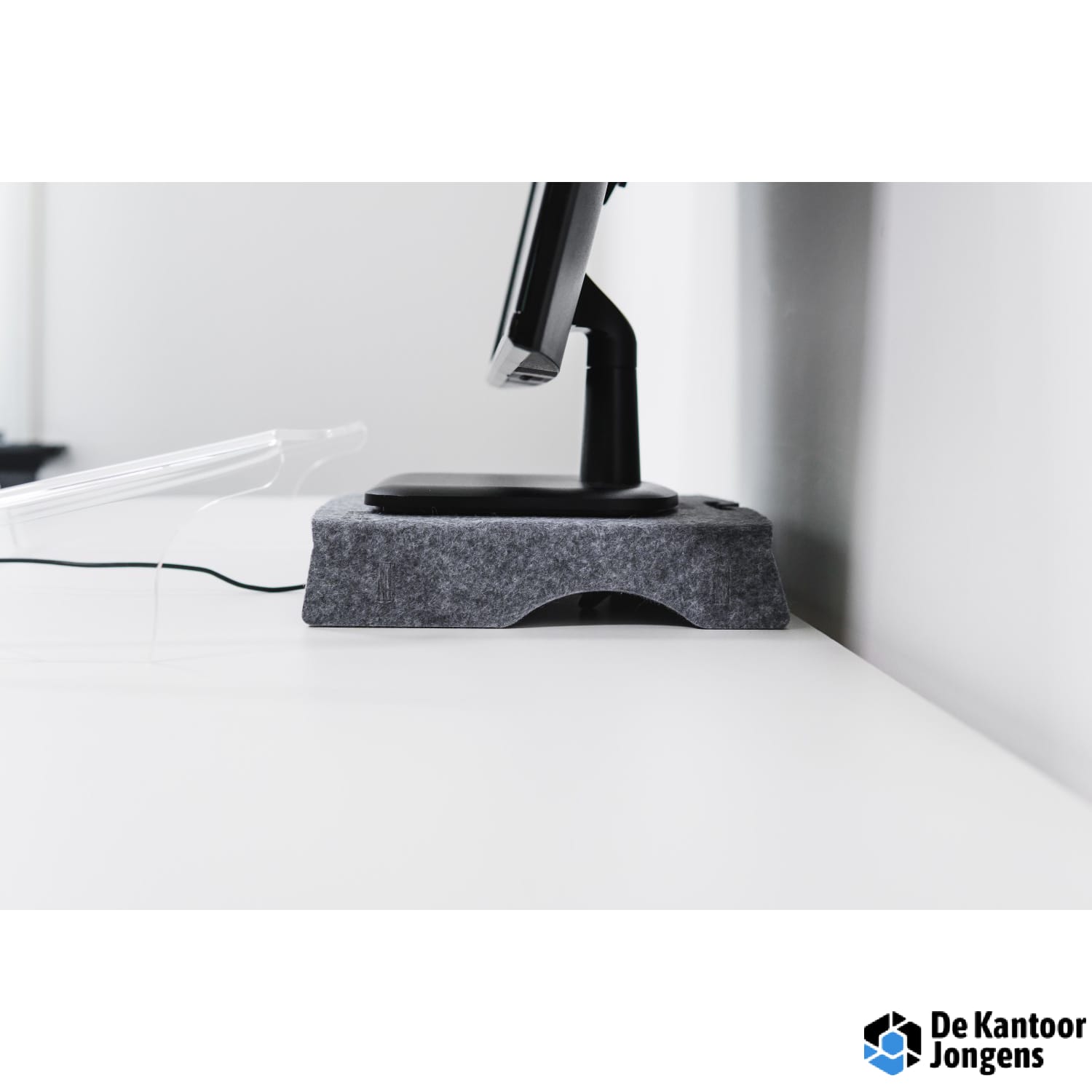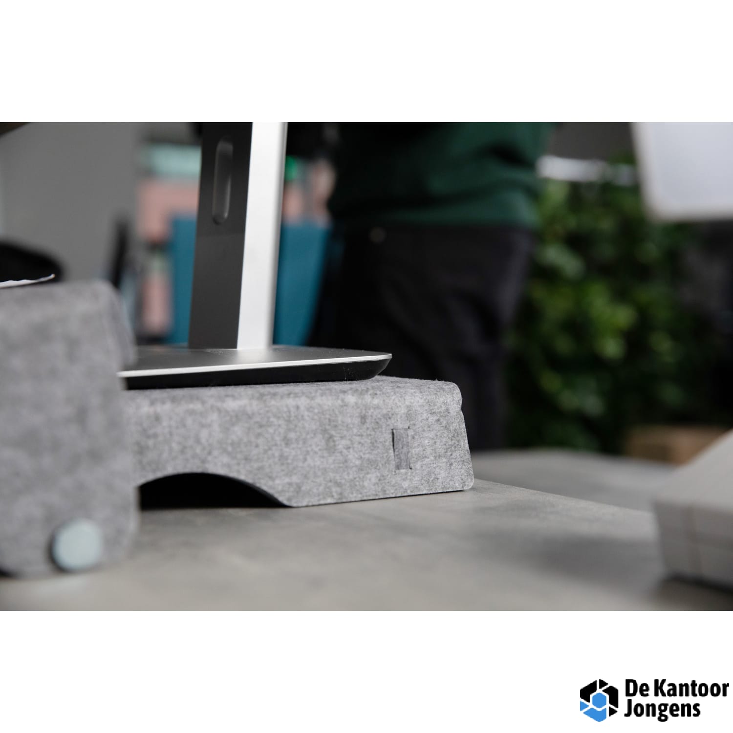 De Q-Riser 50 Circular monitorstandaard is gemaakt van duurzaam materiaal en speciaal gemaakt voor grote flatscreens op een grote voet. Je kunt het beeldscherm op het 300 mm x 250 mm grote oppervlak plaatsen en jouw flatscreen 50 mm verhogen. Met de Q-Riser 50 Circular kan je jouw scherm met 50 mm net genoeg verhogen om het op de optimale, ergonomische kijkhoogte te brengen. Deze monitorstandaard is gemaakt van gerecycled PET-vilt, wat niet alleen duurzaam is, maar ook heel stevig. De Q-Riser 50 Circular is een investering in de toekomst, voor een gezondere manier van werken en voor een beter milieu.