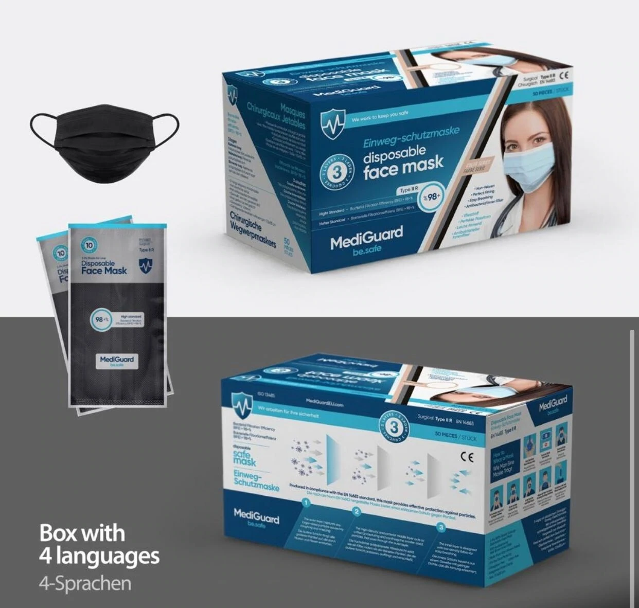 De mondkapjes 3-laags zwart type 2R zijn betrouwbaar en veilig in gebruik. Dit mondmasker betreft de juiste kwaliteit voor gebruik door zorgprofessionals en voor particulieren. Dit mondmasker 3-laags zwart is voorzien van elastische oorlussen, is latex vrij. Vrij van hypoallergeen en heeft een flexibele neusbrug voor de juiste aansluiting op uw neus.