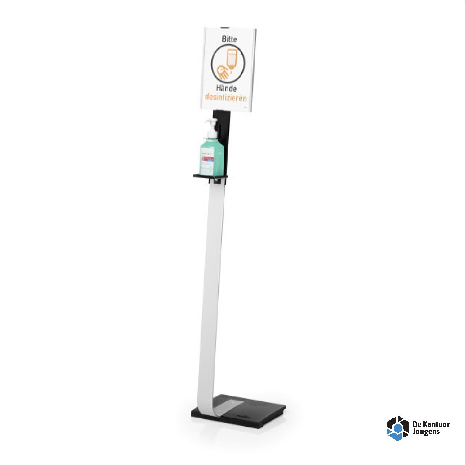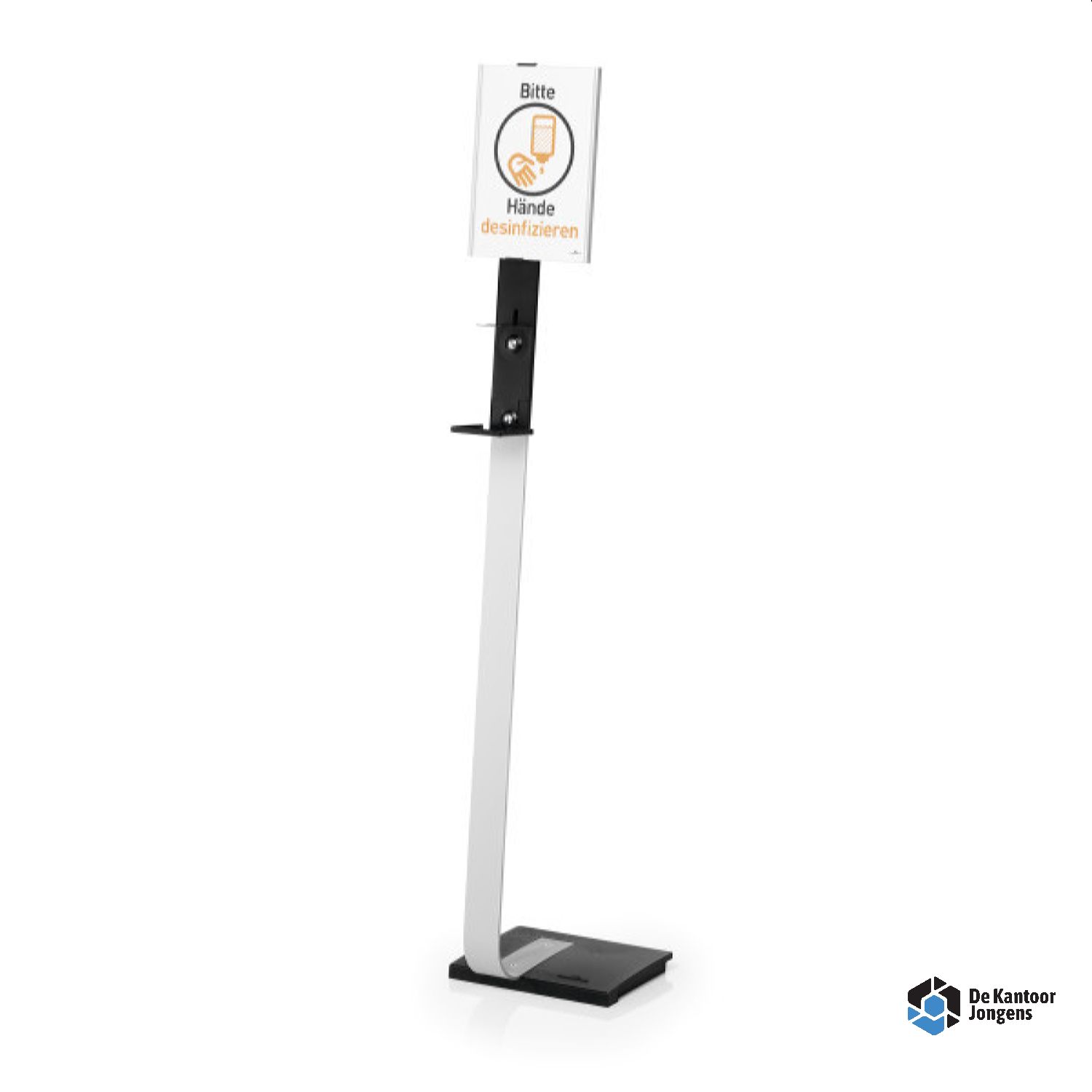 - Stevige en hoogwaardige vloerdispenser voor desinfectiemiddel, met infopaneel