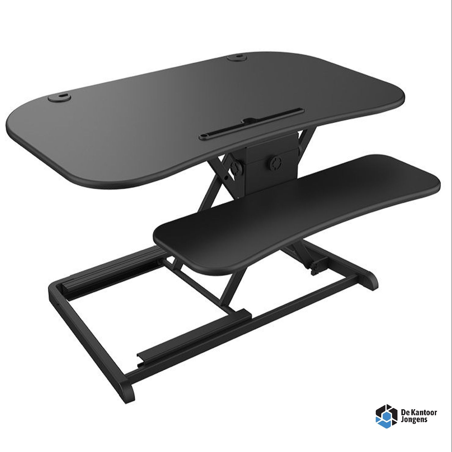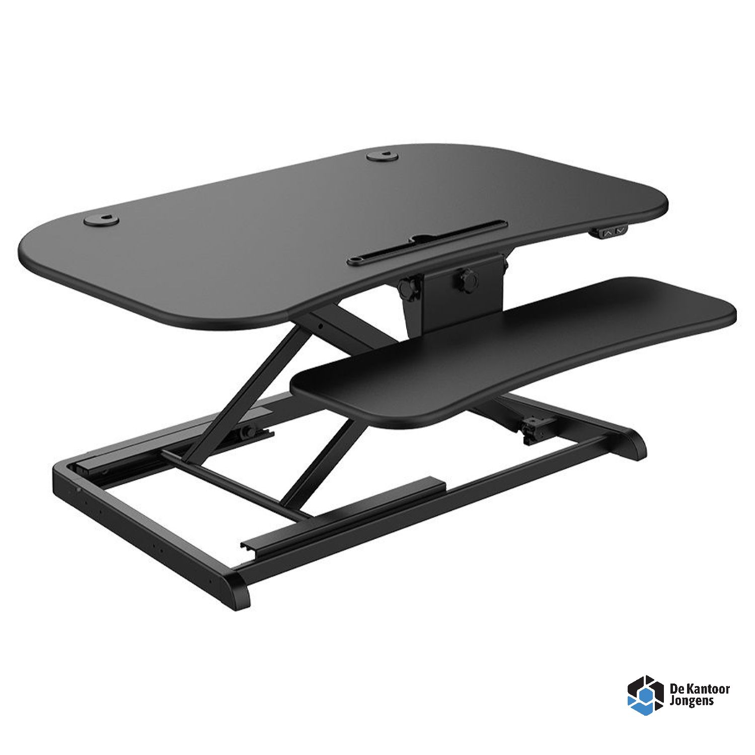 Dit mobiele platform past op elke eettafel of standaard, niet-verstelbaar bureau. Met een eenvoudige elektrische constructie kan dit platform op elke gewenste hoogte worden geplaatst. De elektrische bureauverhoger is zeer eenvoudig te bedienen met de op en neergaande knop.