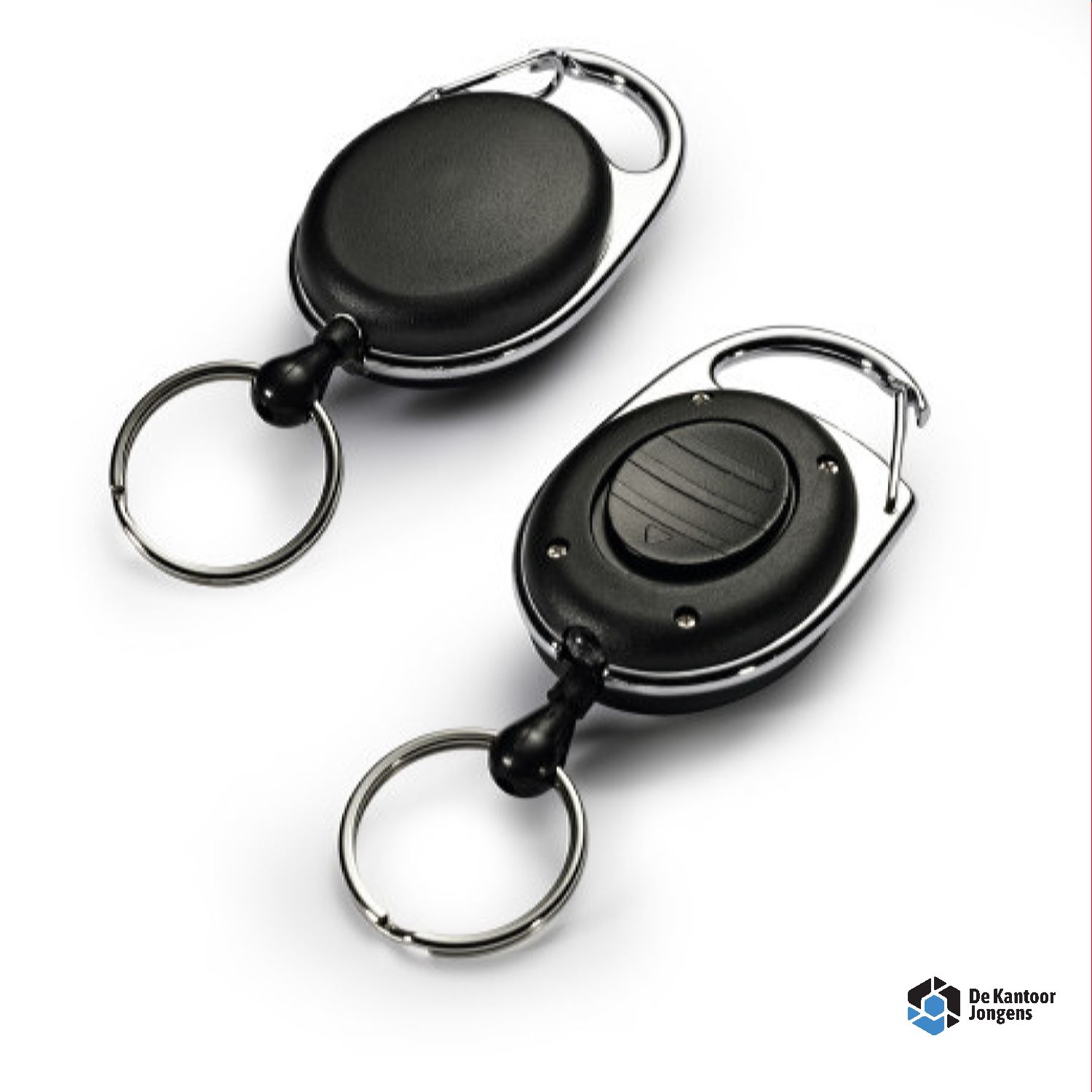 Stijlvol, met metalen afwerking en clip bovenaan. Voorzien van een sleutelring.