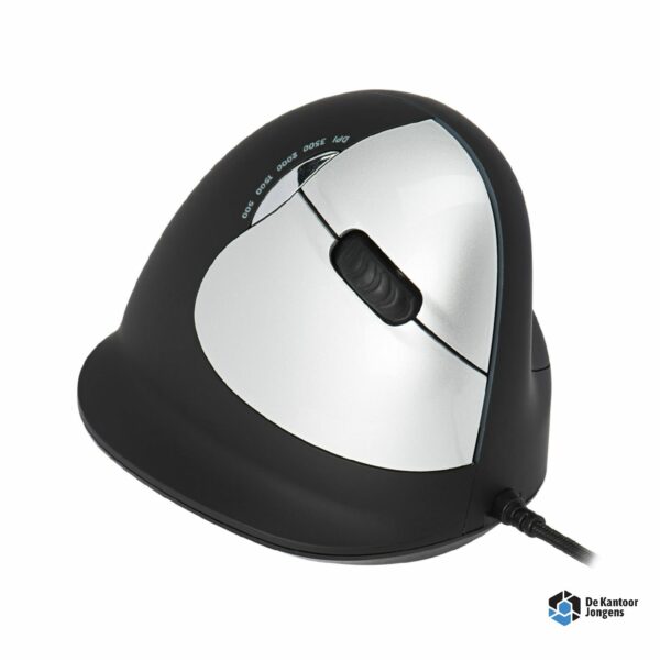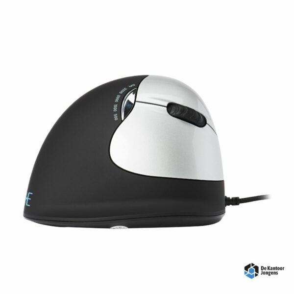 De ergonomische R-Go HE Break muis heeft een verticale stand, waardoor je de muis automatisch met je onderarm zult bewegen in plaats van alleen je hand. Hiermee voorkom je overbelastingsklachten, zoals RSI- klachten. De HE Break muis heeft een ronde vorm, zodat je hand en pols in een natuurlijke, ontspannen stand staan. De muis ligt prettig in de hand en ondersteunt alle vingers. Ben je links- of rechtshandig? We hebben verschillende versies en maten beschikbaar, zodat de muis in elke hand past.