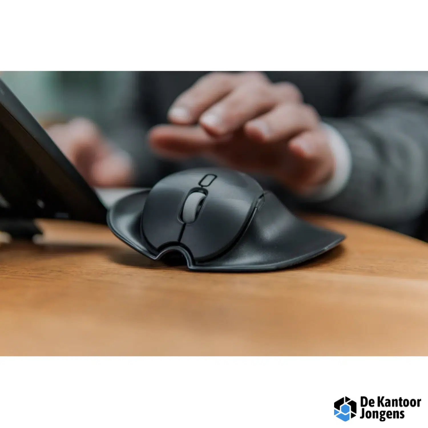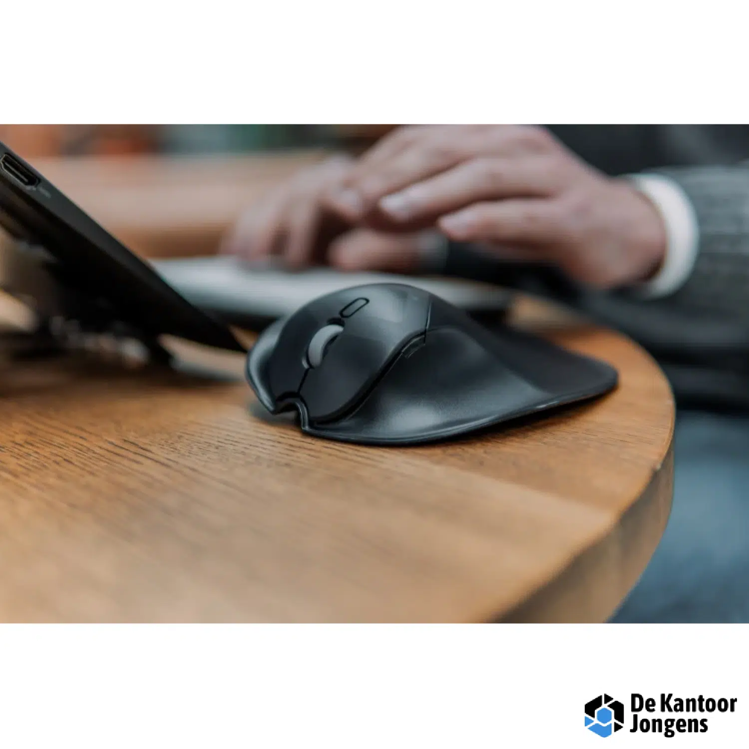 Daarnaast voorkomt de licht hellende stand van de hand met 25 graden en dat de hand volledig op de muis rust, knikken of afknellen van bloedvaten.