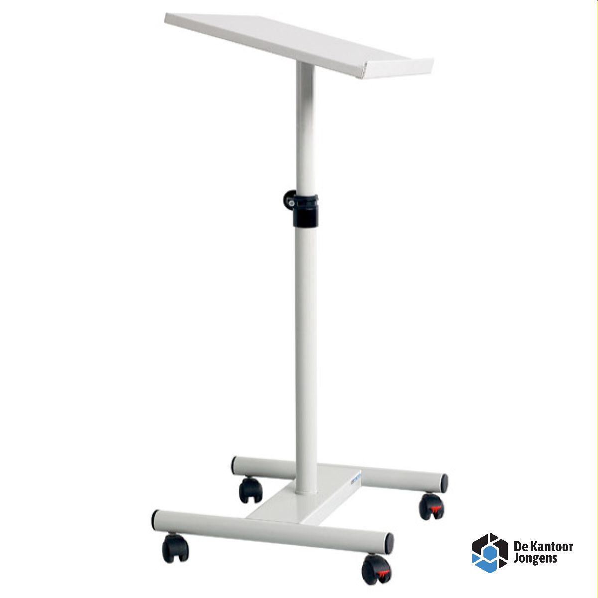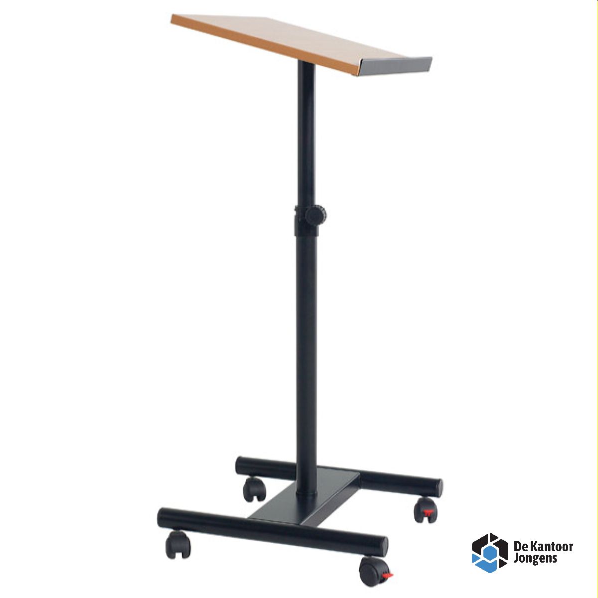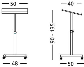 Lezenaar Kolom gemaakt van hoogwaardig gelakt staal. Eenvoudig in gebruik en traploos in hoogte verstelbaar. De lezenaar is verrijdbaar met 2 geremde wielen. Het werkblad heeft een opstaande rand