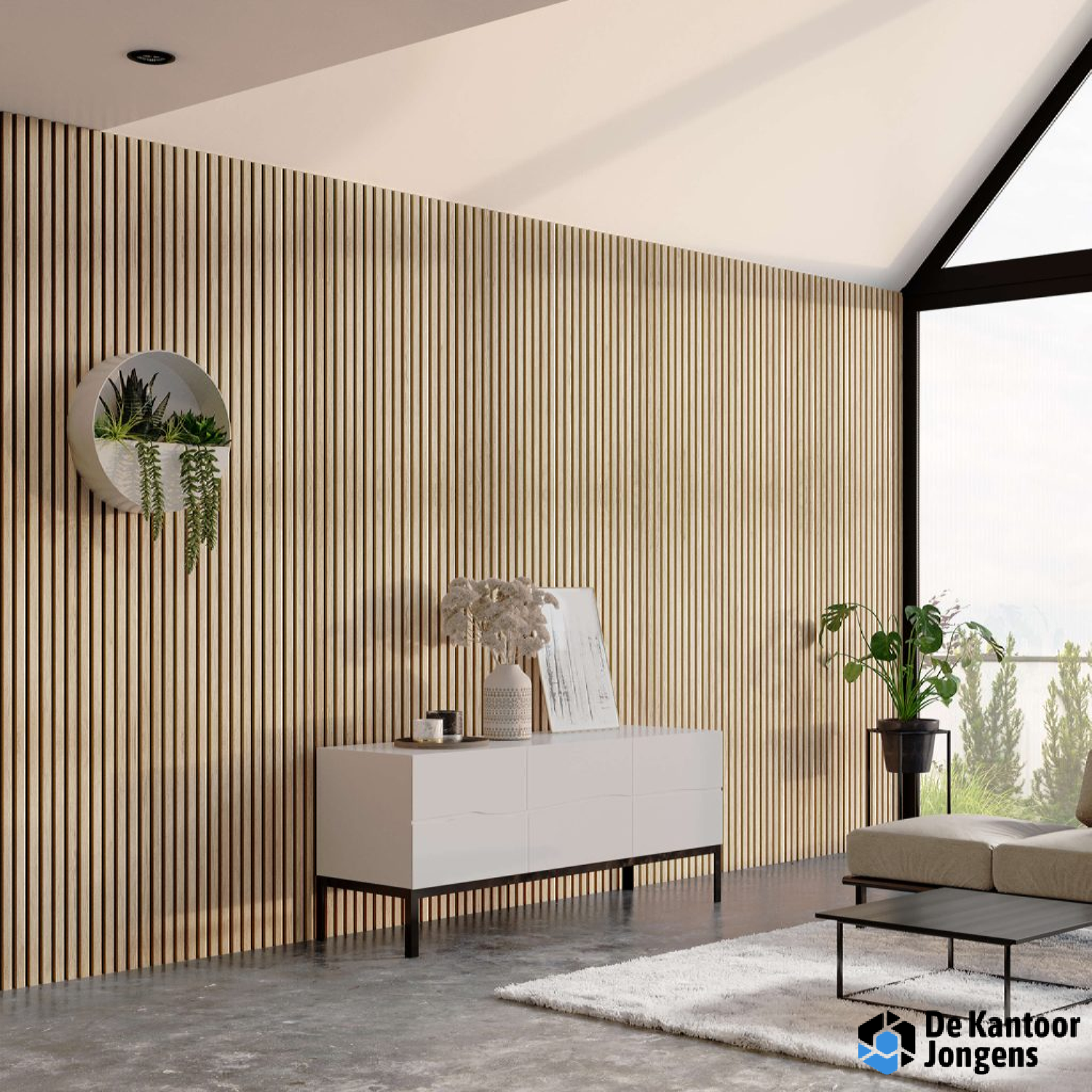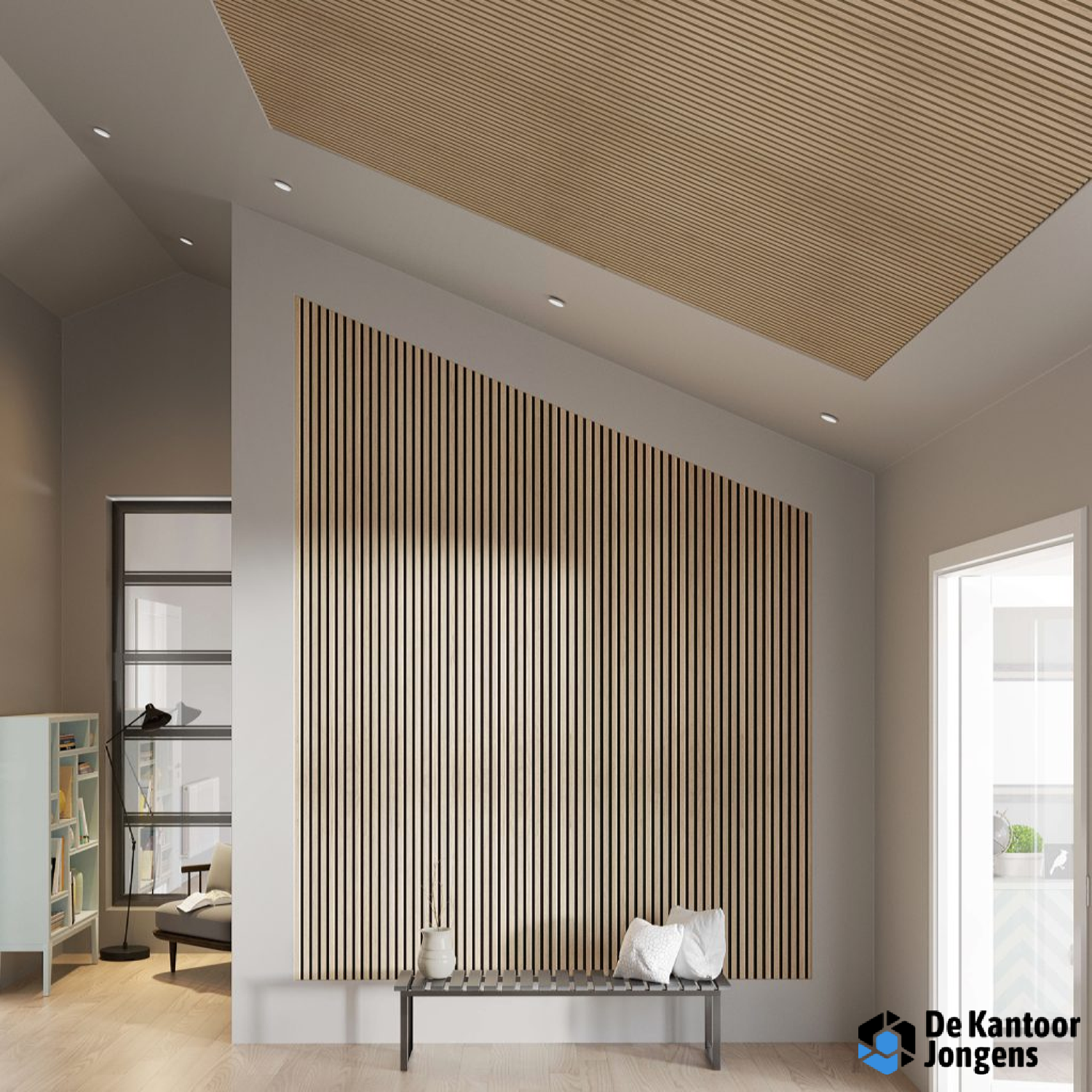 Het Akupaneel kan worden gebruikt voor het creëren van prachtige lamellen wanden en plafonds die een moderne uitstraling aan de ruimte geven. Het paneel is geluiddempend en verwijdert nagalm, wat de akoestiek in de kamer drastisch verbetert.