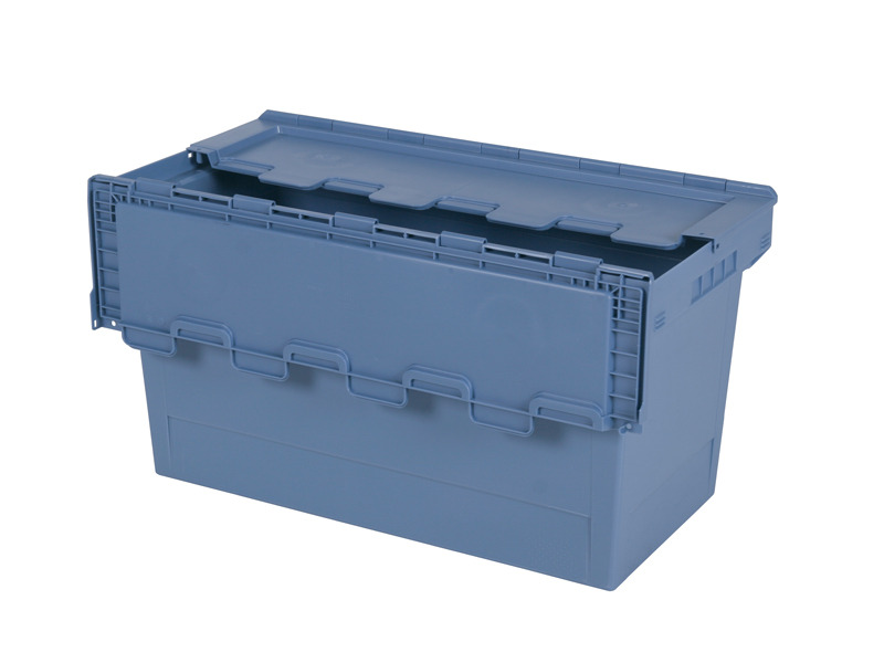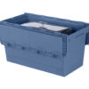 Distributiebak / Chafing-dish bak (800 x 400 x H 440 mm – 100 liter) met scharnierdeksel. Nestbare en deksel-stapelbare bak, uitgevoerd met gesloten zijwanden, bodem en handgrepen. Voorzien van scharnierende in elkaar sluitende dekselhelften. Het deksel is verzegelbaar. Ruimtebesparing in geneste toestand tot 70%. Veelgebruikte bak in de verhuursector om chafing-dishes in op te slaan. Op locatie kunnen de bakken in lege toestand namelijk genest worden. Dit bespaart veel ruimte. De bak wordt echter ook veelvuldig ingezet voor distributie-toepassingen.