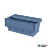 Distributiebak / Chafing-dish bak (800 x 400 x H 340 mm – 76 liter) met scharnierdeksel. Nestbare en deksel-stapelbare bak, uitgevoerd met gesloten zijwanden, bodem en handgrepen. Voorzien van scharnierende in elkaar sluitende dekselhelften. Het deksel is verzegelbaar. Ruimtebesparing in geneste toestand tot 70%. Veelgebruikte bak in de verhuursector om chafing-dishes in op te slaan. Op locatie kunnen de bakken in lege toestand namelijk genest worden. Dit bespaart veel ruimte. De bak wordt echter ook veelvuldig ingezet voor distributie-toepassingen.