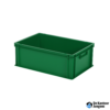 | Uitvoering | Geheel gesloten Euronorm stapelbak met gesloten handgrepen en gladde bodem, kleur groen. |