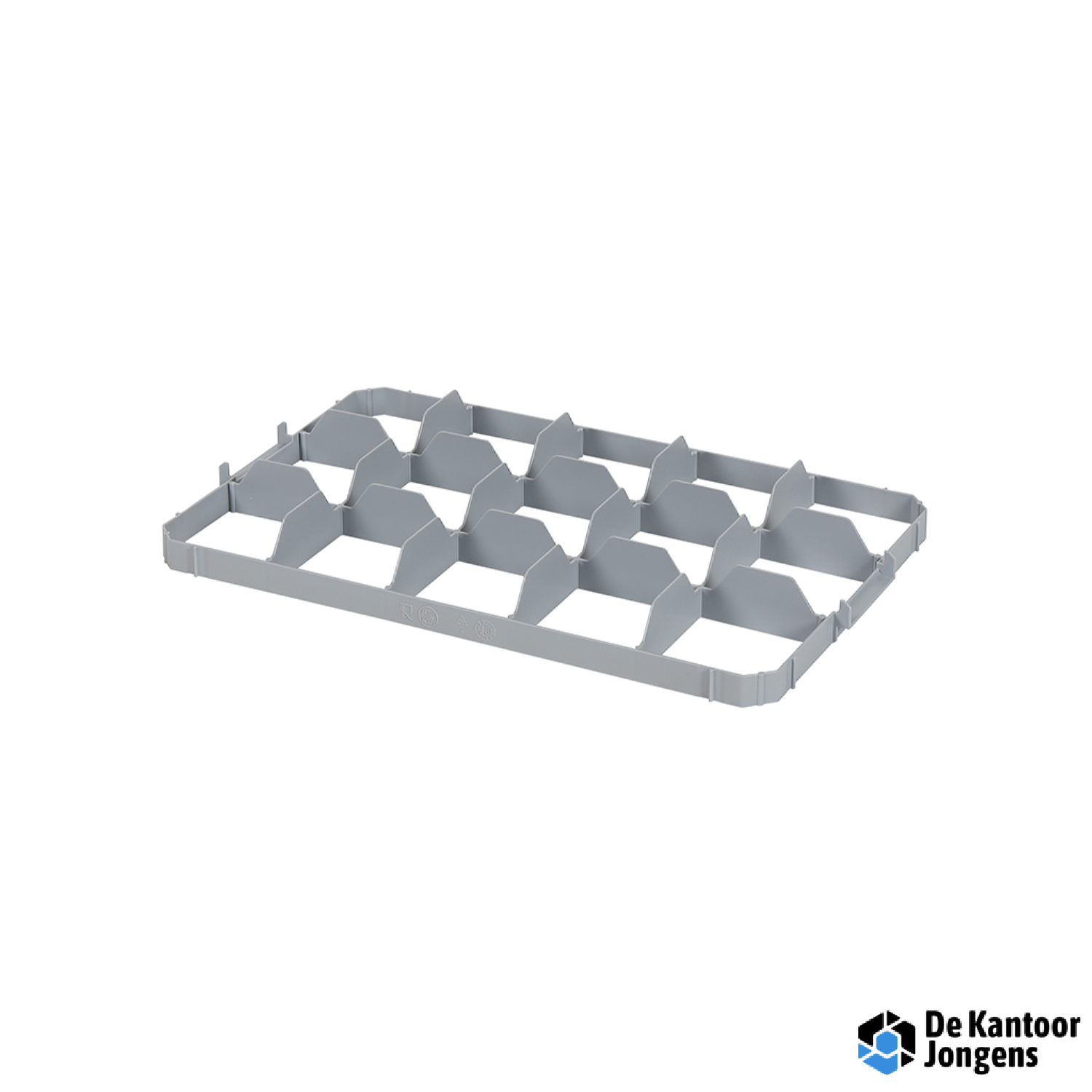 De vakverdelingen passen uitsluitend in geperforeerde kratten 600×400 mm en zijn niet geschikt voor stapelbakken met gesloten wanden.
