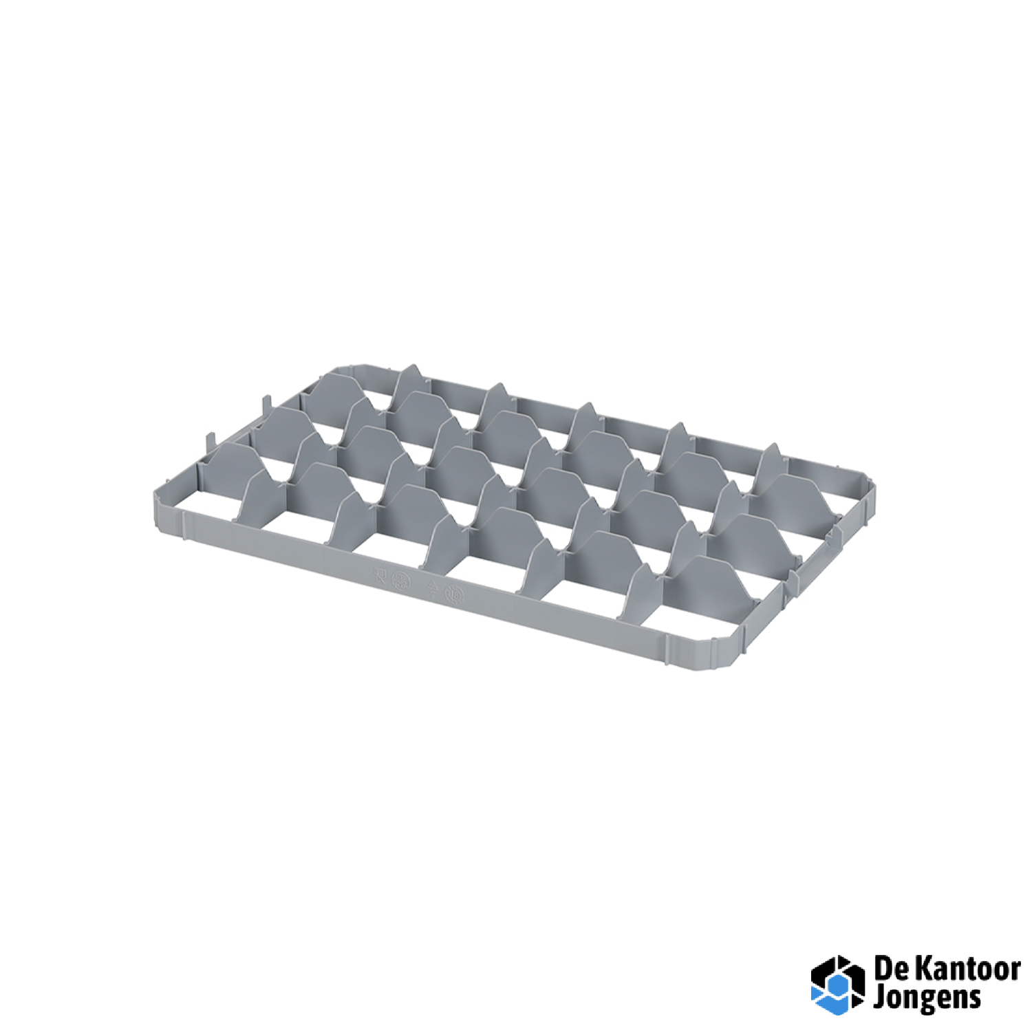 De vakverdelingen passen uitsluitend in geperforeerde kratten 600×400 mm en zijn niet geschikt voor stapelbakken met gesloten wanden.
