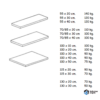 55×20 cm, 55×30 cm, 55×40 cm, 70/85×20 cm, 70/85×30 cm, 70/85×40 cm, 100×10 cm, 100×20 cm, 100×30 cm, 100×40 cm, 100×50 cm, 115×20 cm, 115×30 cm, 130×20 cm, 130×30 cm