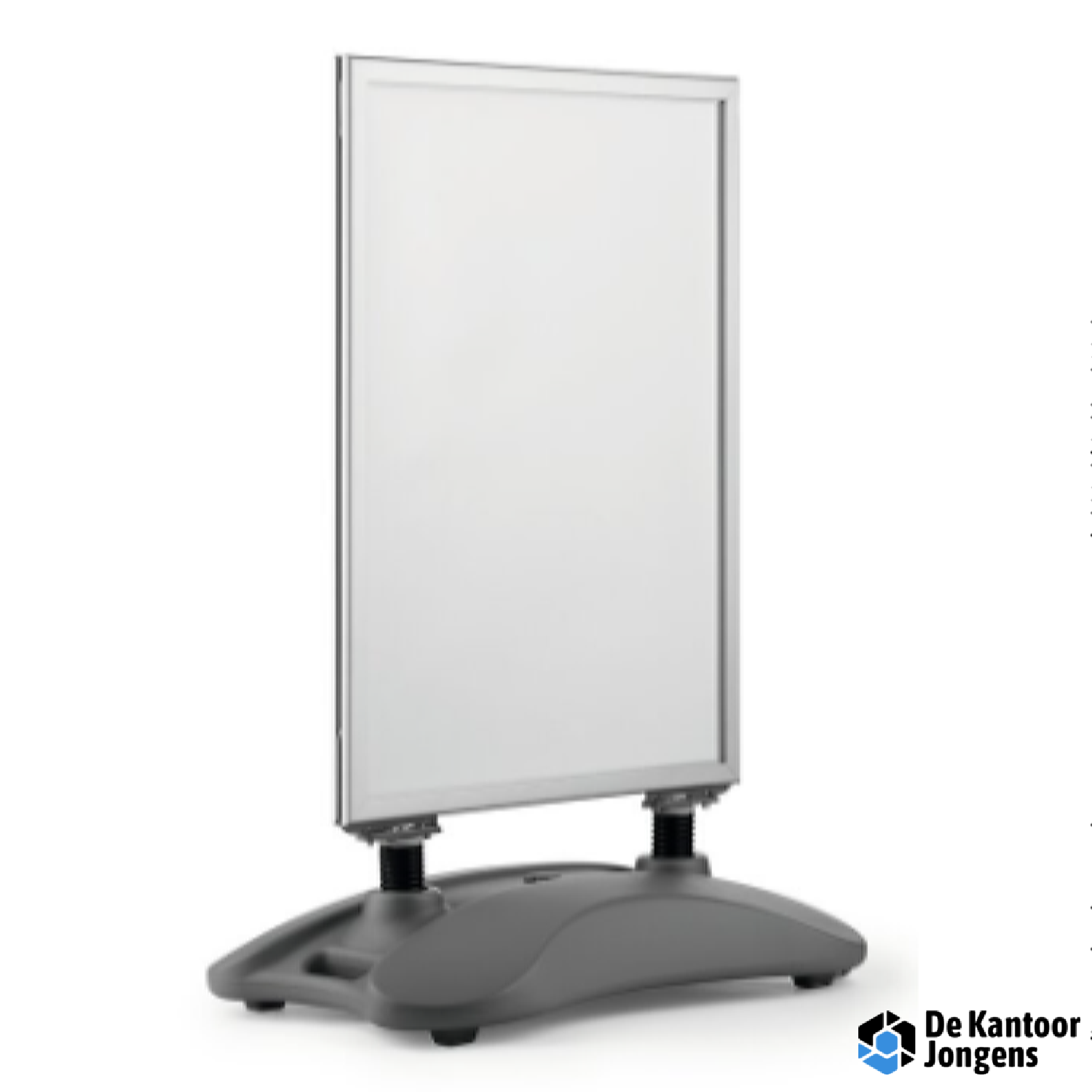- Dubbelzijdige klantenstopper met stevige voet en aluminium kliklijst in zilver geanodiseerde afwerking