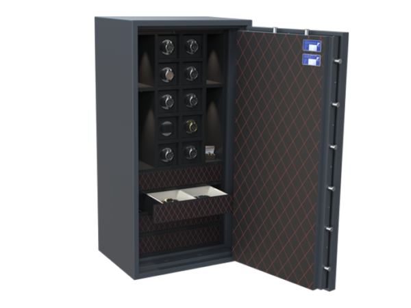 Een horlogekluis is de perfecte oplossing voor het opbergen van kostbaarheden. Stel uw eigen kluis voor horloges, sieraden, juwelen en andere kostbaarheden samen. Wij vertalen uw wensen snel naar een op maat gemaakte horlogekluis (incl. watchwinders) van het gerenommeerde merk Salvus.