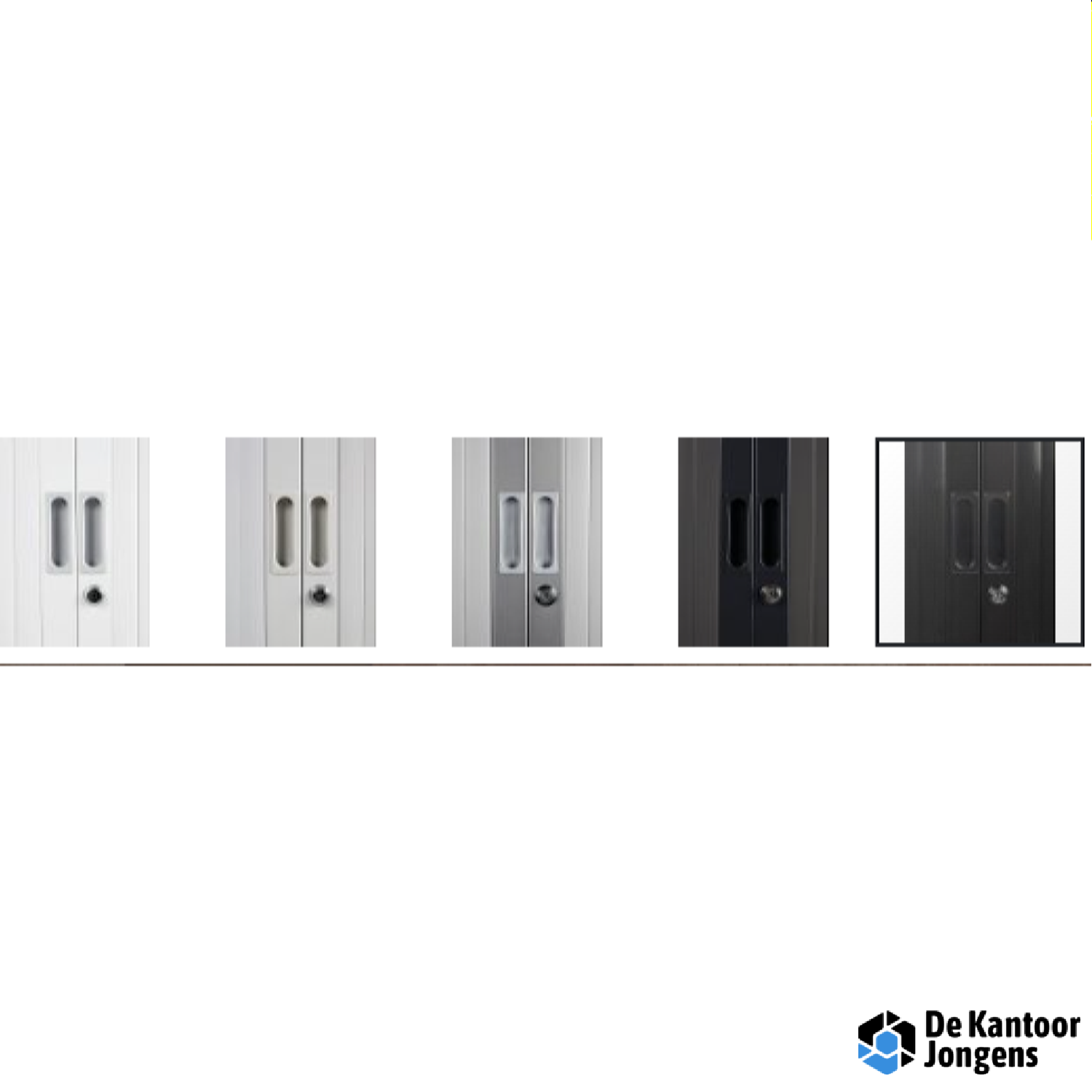 De stevige, slijtvaste CUBE-roldeurkasten zijn van metaal, voorzien van elektrostatische poedercoating. Dit model wordt met 1 verstelbaar legbord geleverd voorzien van rails t.b.v. het hangen van laterale hangmappen: zeer praktisch! De lamellen van kunststof zijn afwasbaar en zeer stevig. Deze CUBE ROLDEURKAST 72,5x120x43 CM heeft 2 roldeuren, die eenvoudig te openen zijn. Deze roldeurkast wordt in een vaste maat geleverd. Via onze webshop kunt u diverse kleuren selecteren, waarbij lichtere en donkere kleuren beschikbaar zijn, denkt u hier bijvoorbeeld aan de kleuren wit, aluminium of zwart, passend bij het interieur van uw kantoorruimte.