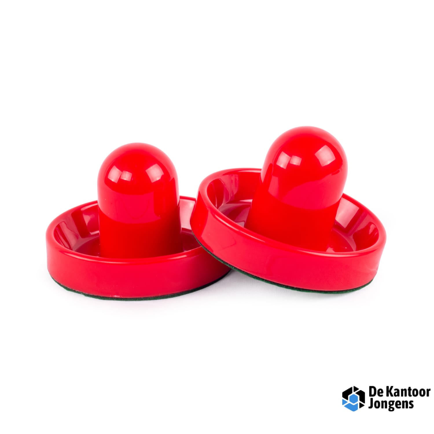 De airhockey pushers zijn uitgevoerd in een stoere rode kleur en worden geleverd in een set van 2 stuks.