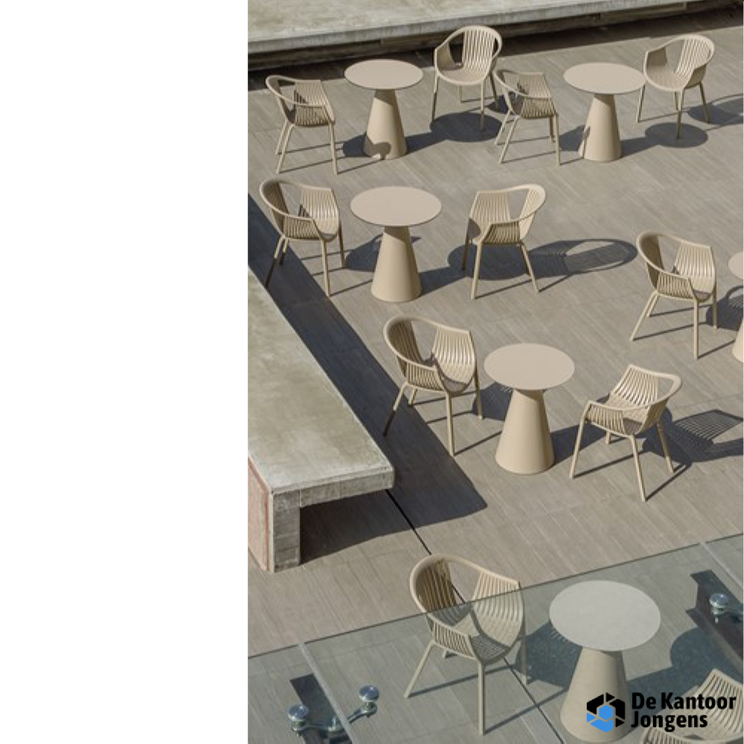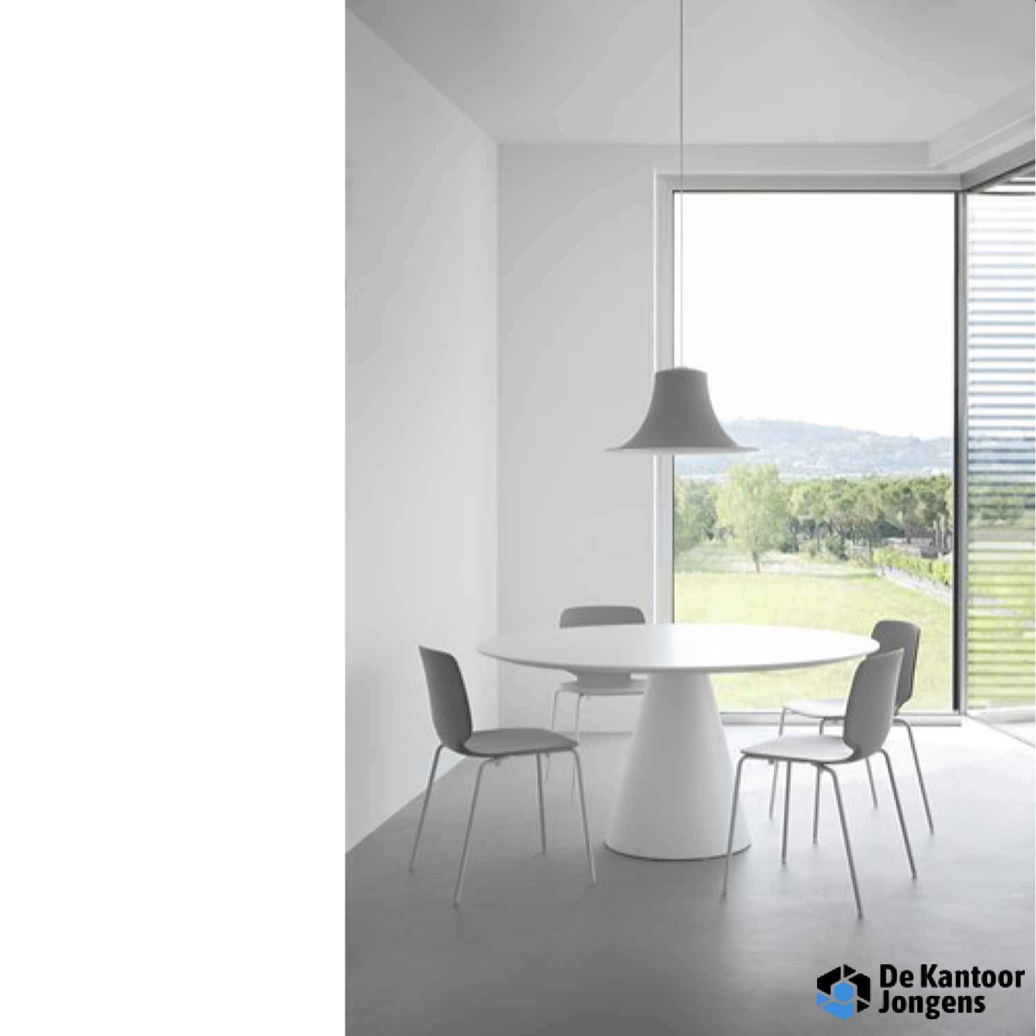 Ikon tafel met een volledig kunststof onderstel in conische vorm. De bladen zijn van volkern.