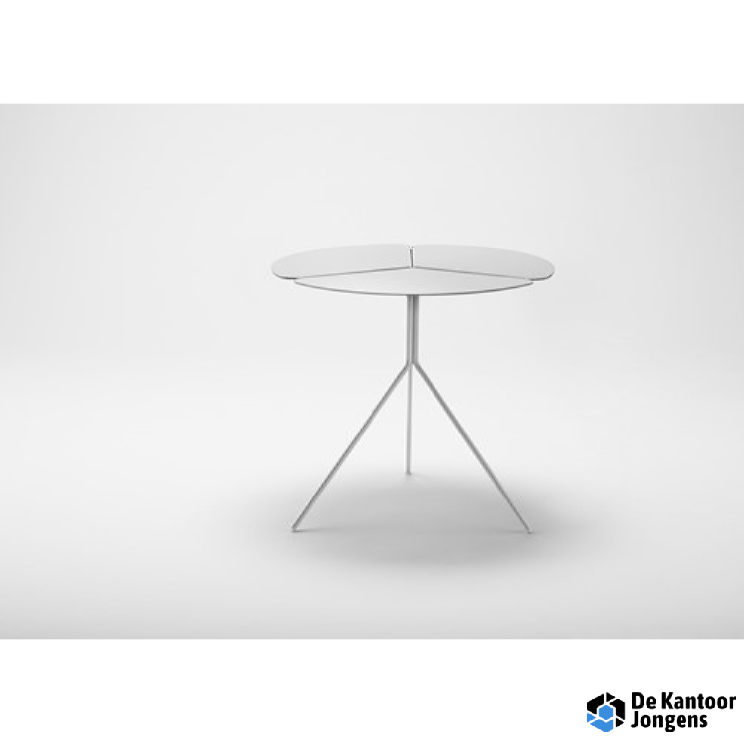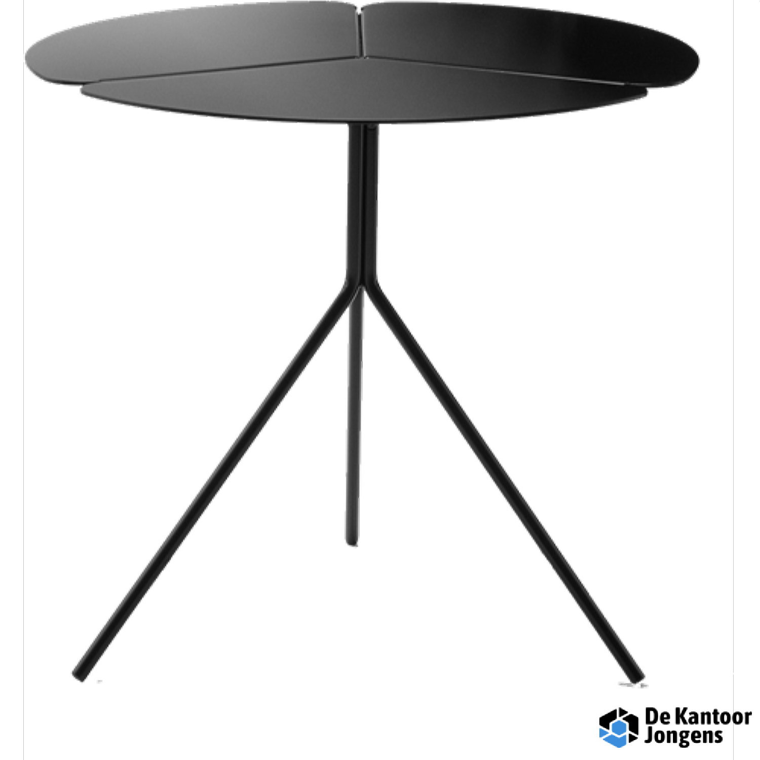 Een speelse tafel waarvan de vorm is geïnspireerd op een klaverblad. Licht en luchtig ontwerp volledig in metaal. Doorsnede blad is 50 cm. Hoogte 45 cm.