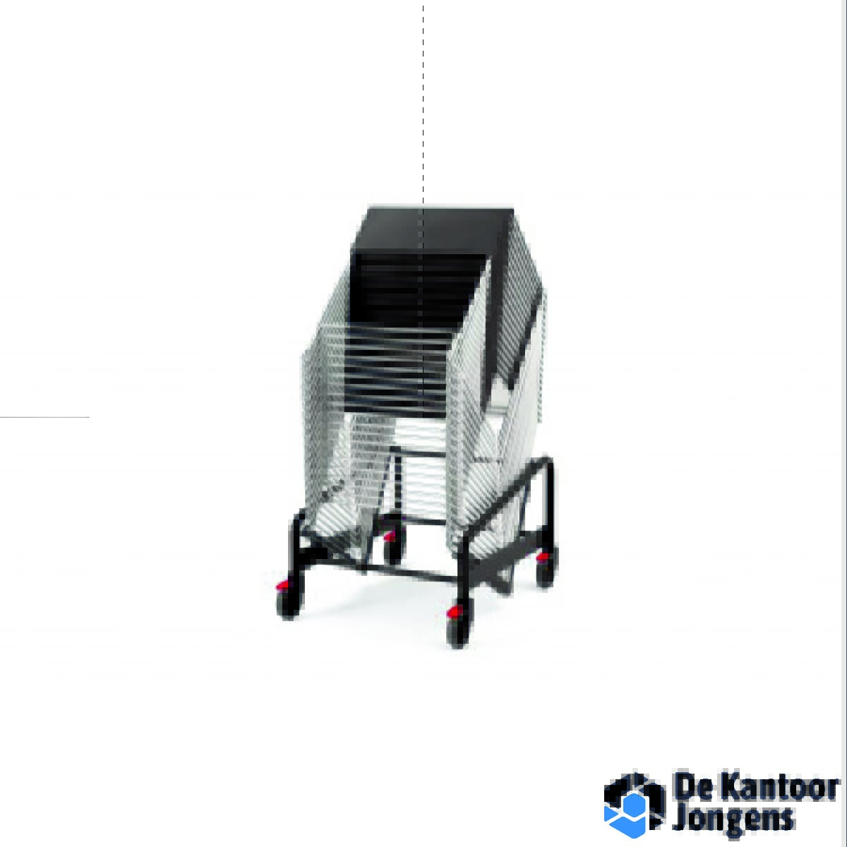 Trolley voor Qliq Tafel, maximale capaciteit 20 stuks. Kleur zwart. Vier solide zwenkwielen met rem