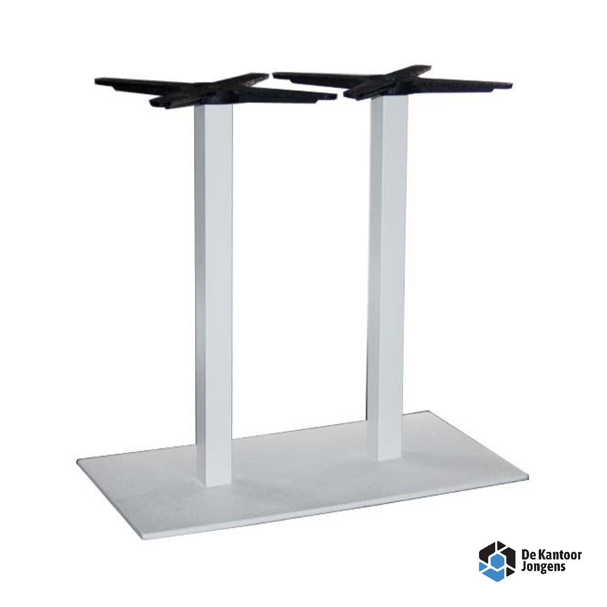 Bijzonder stabiel tafelonderstel met dubbele kolompoot. Zware rechthoekige voet met 2 vierkante slanke kolommen 50×50 mm en gietijzer bladkruizen.