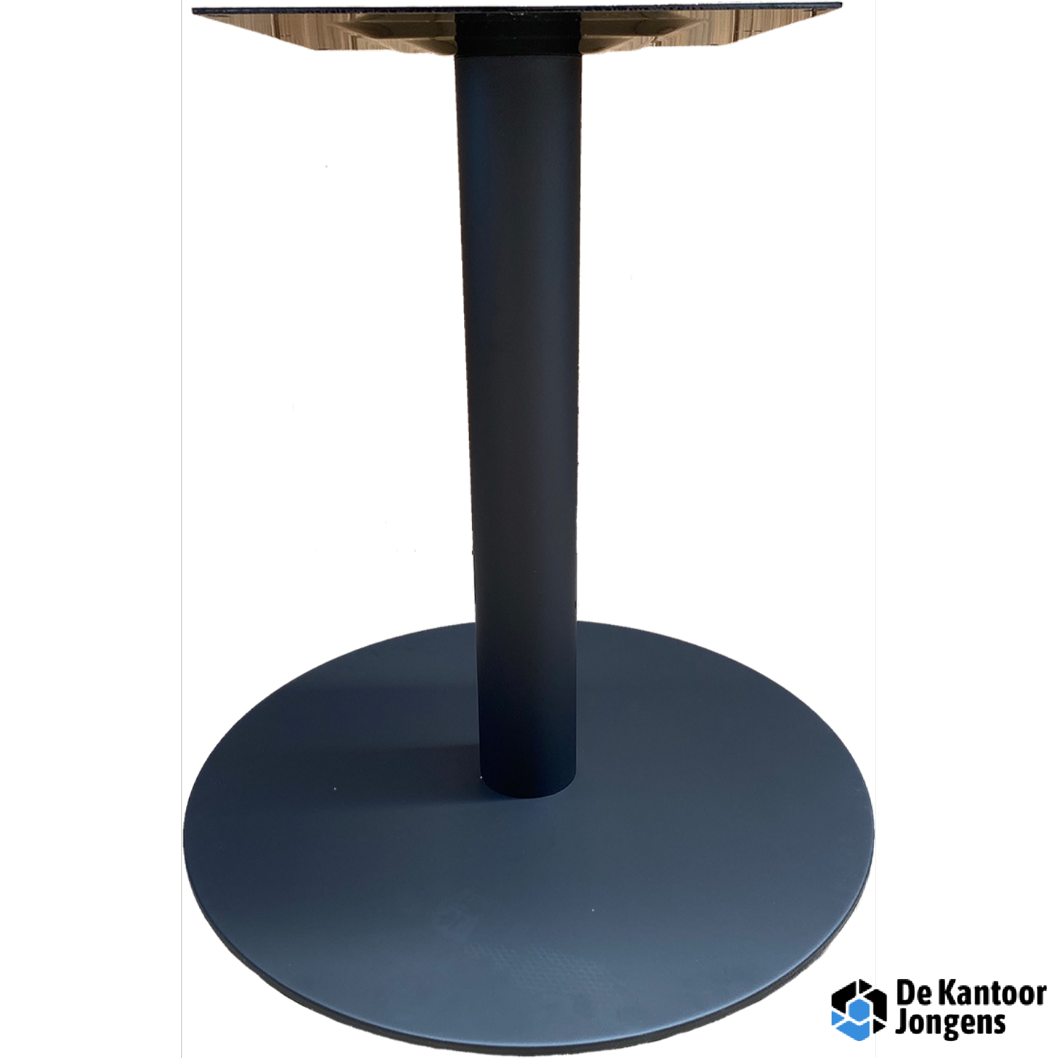 Tafelonderstel met vlakke ronde voet, ballastplaat staal met afdekkap in poedercoat, chroom of mat rvs.