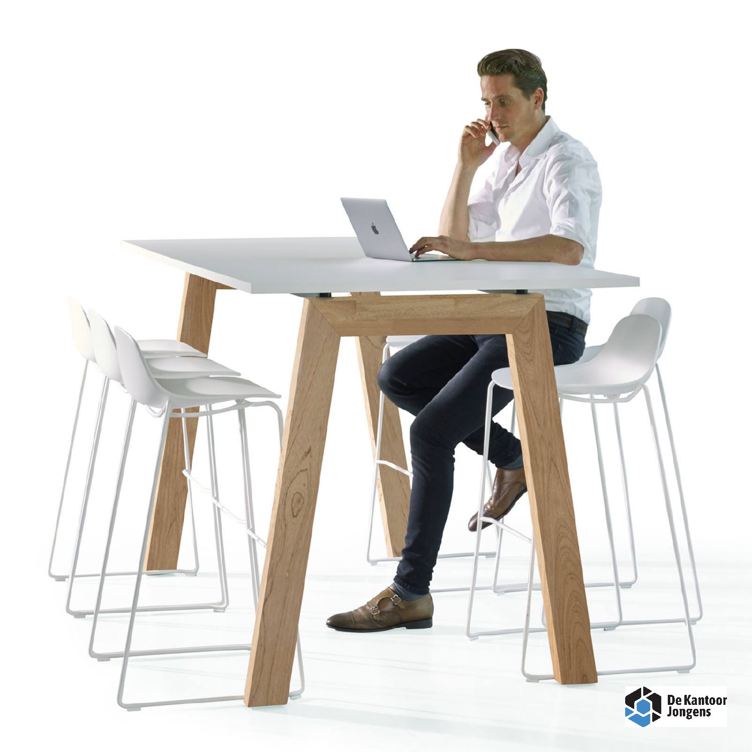 Doordat de Basso kruk een lage rug heeft kan deze onder een statafel geschoven worden.