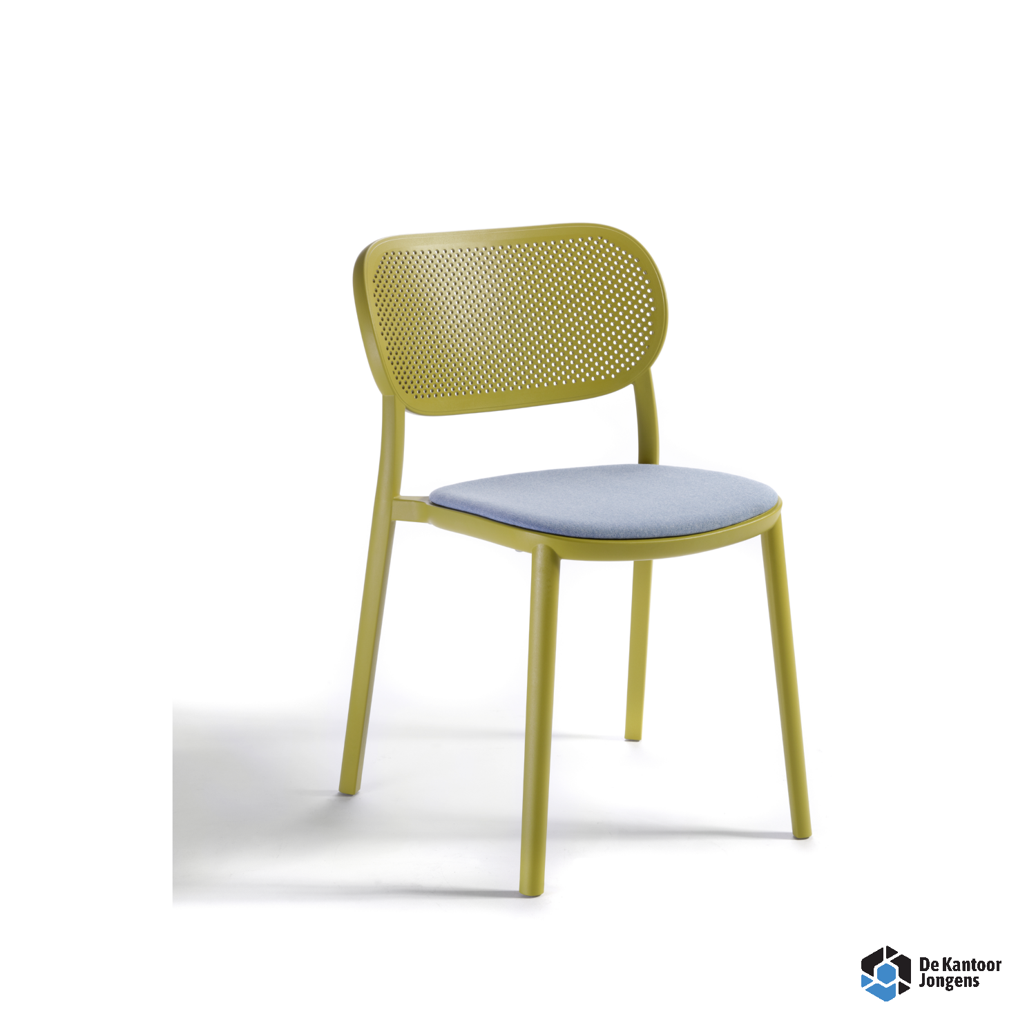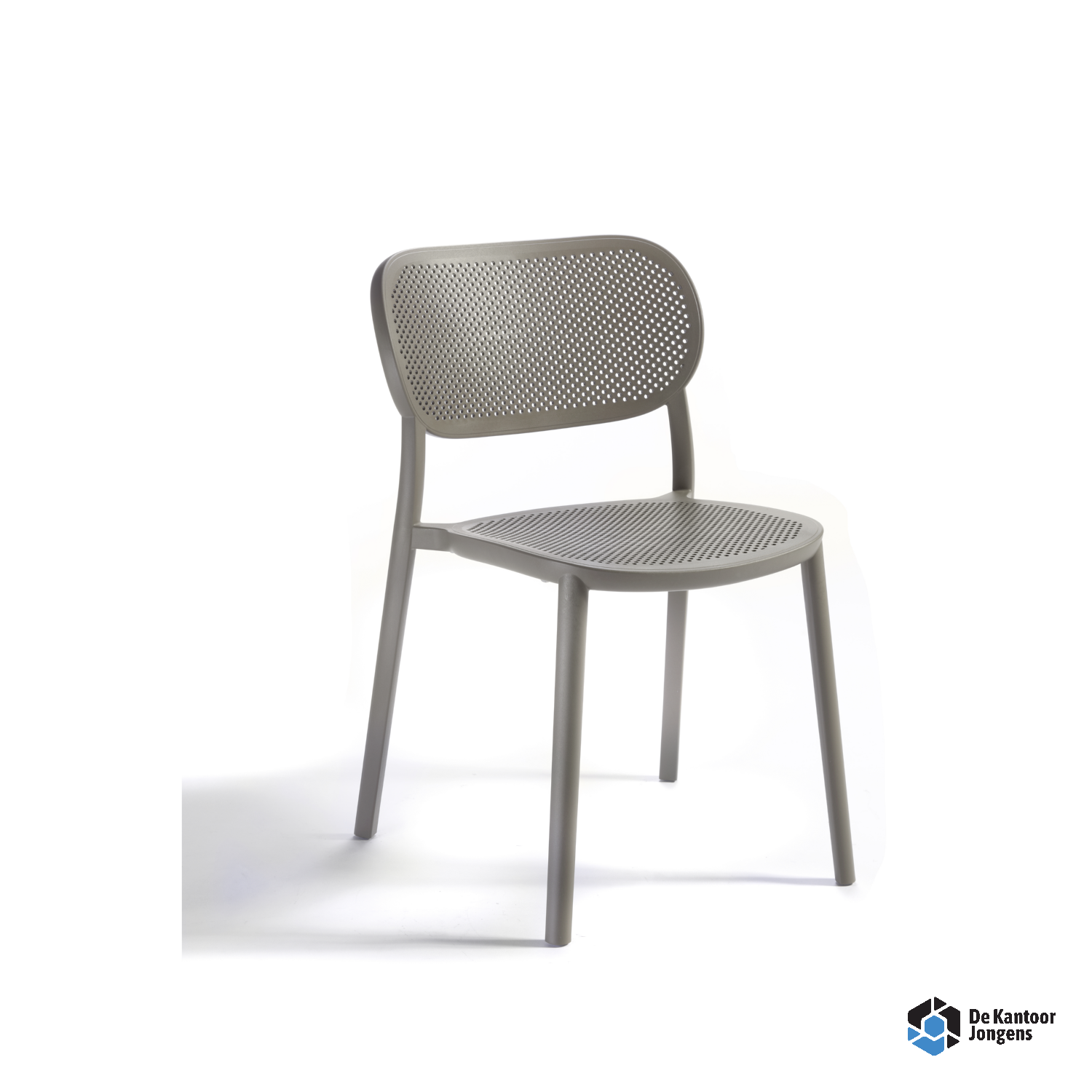 Deze ideale stapelbare terrasstoel, leverbaar in 9 verschillende kleuren. Door de gaatjes in de zitting valt eventueel regenwater direct op de grond, waardoor de stoel snel droogt