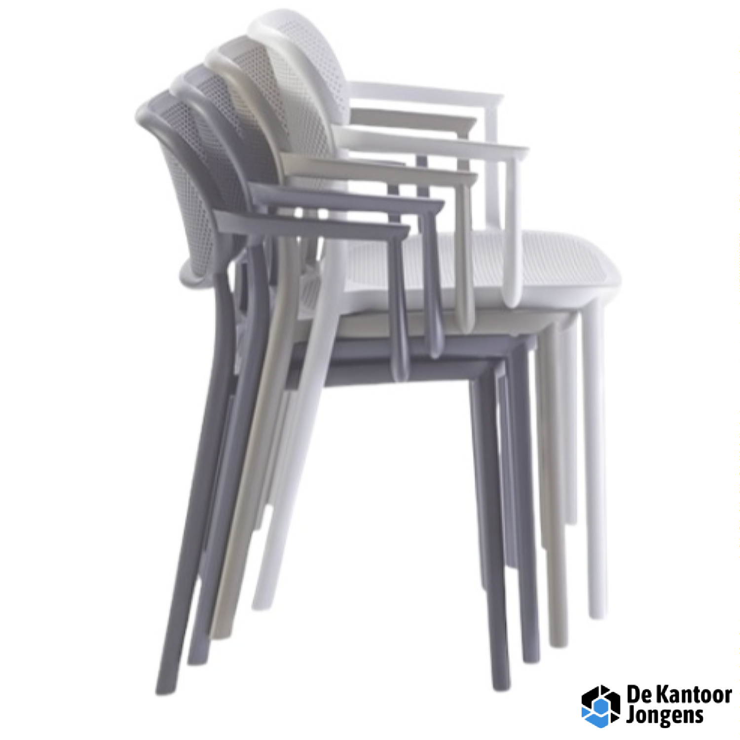 Deze ideale stapelbare terrasstoel, leverbaar in 8 verschillende kleuren. Door de gaatjes in de zitting valt eventueel regenwater direct op de grond, waardoor de stoel snel droogt.