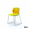 Kunststof stoel zonder armleggers. De stoel is aan de onderkant voorzien van een nette afwerkplaat waardoor de stoel goed stapelbaar is tot 6 stuks.
