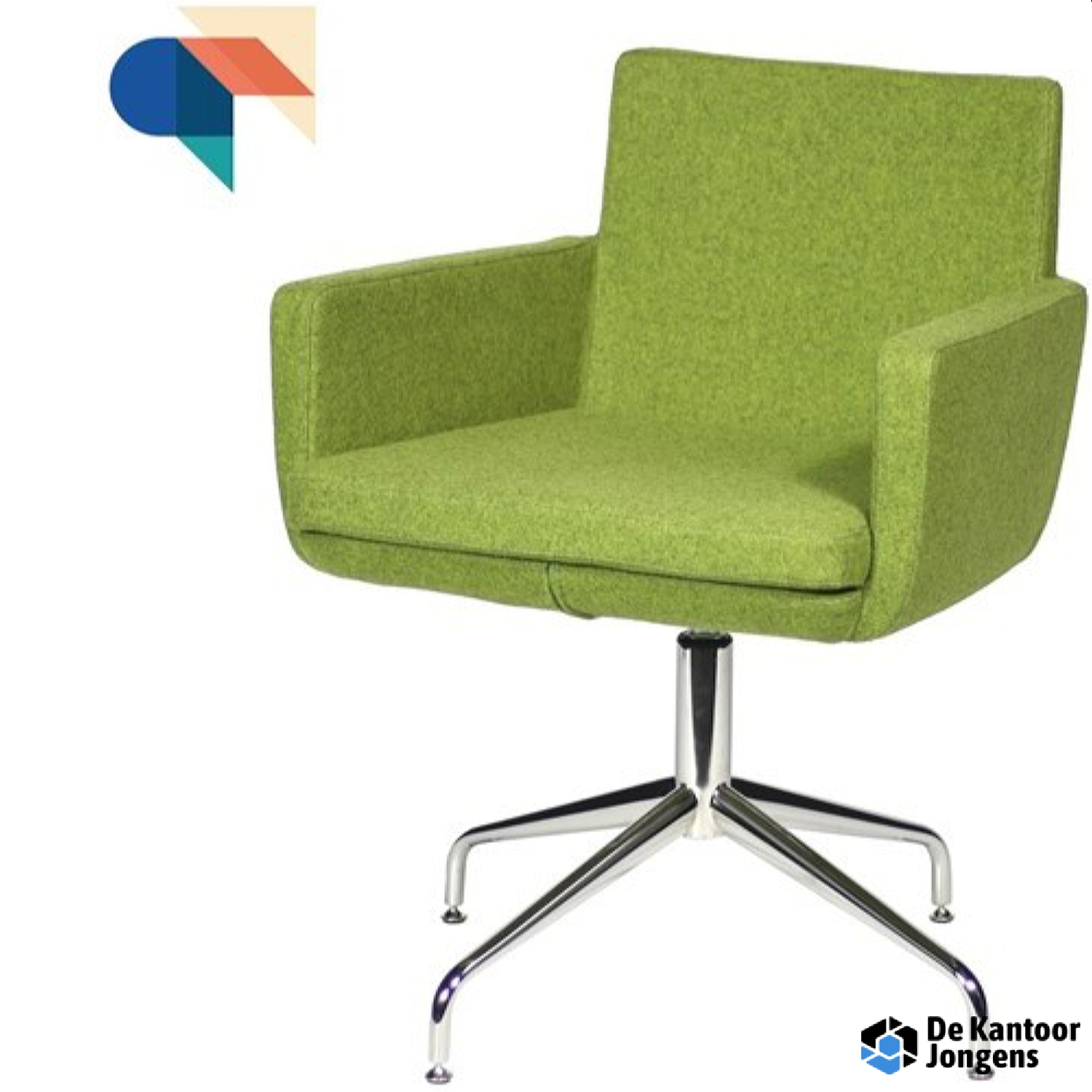 Modern en strak vormgegeven vergaderstoel op een spiderframe. De stoel is draaibaar. Het frame is verchroomd.