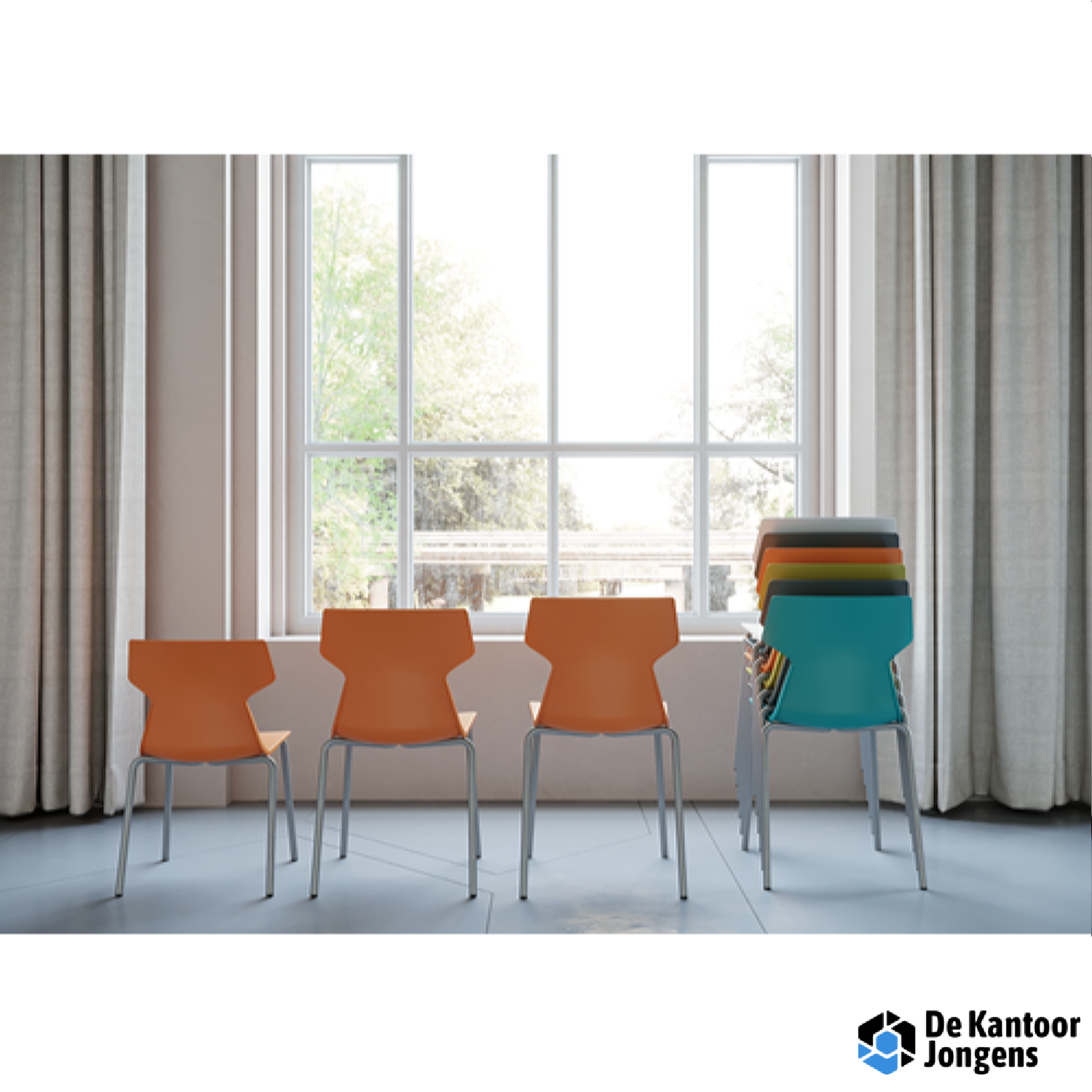Met het frisse kleurenpalet is er voor ieder wat wils. Het kunststof van de stoel is vervaardigd van 100% recyclebaar brandvertragende technopolymeer.